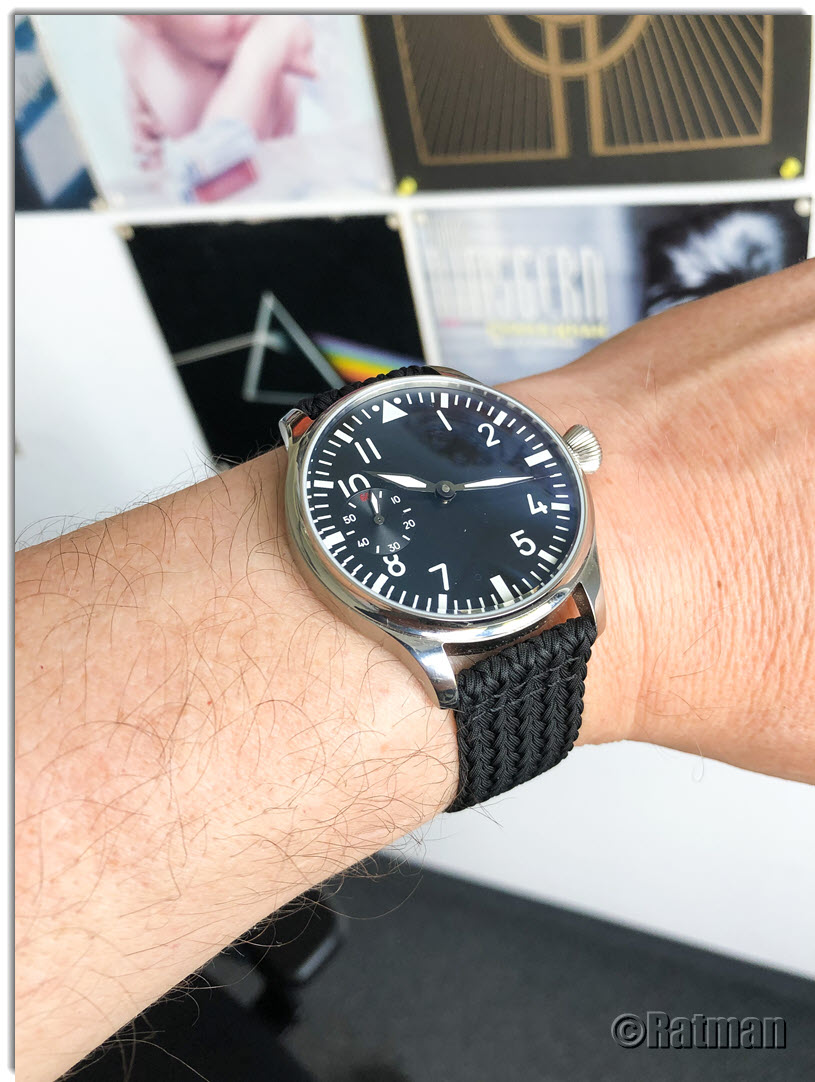 Heute hab ich mich für meinen Flieger entschieden. Das Perlon-Band trägt sich gut bei der momentanen Hitze...