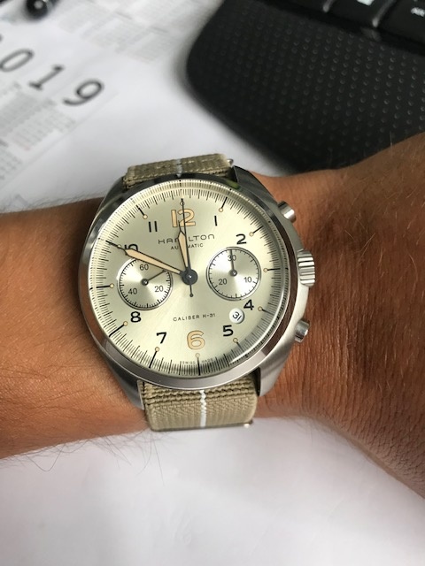Zurück aus dem wohlverdienten Urlaub, endlich wieder den Hamilton Chrono. Diesmal am neuen China Erika Strap (gleiches Strap wie von Sofie nur mit ordentlicher Hardware die auch hält!).