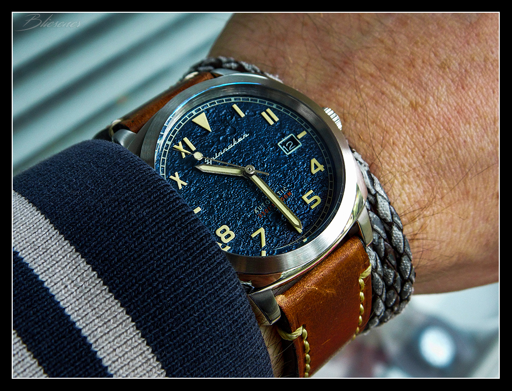 Leuchten tut auf dem recht clean gehaltenen Zifferblatt nichts. Das Armband könnten empfindliche Gemüter als scharfkantig wahrnehmen, da die Kanten zwar entgratet, aber nicht gebrochen sind. Die Schließe aus Blech versieht ihren Dienst sauber und unauffällig.