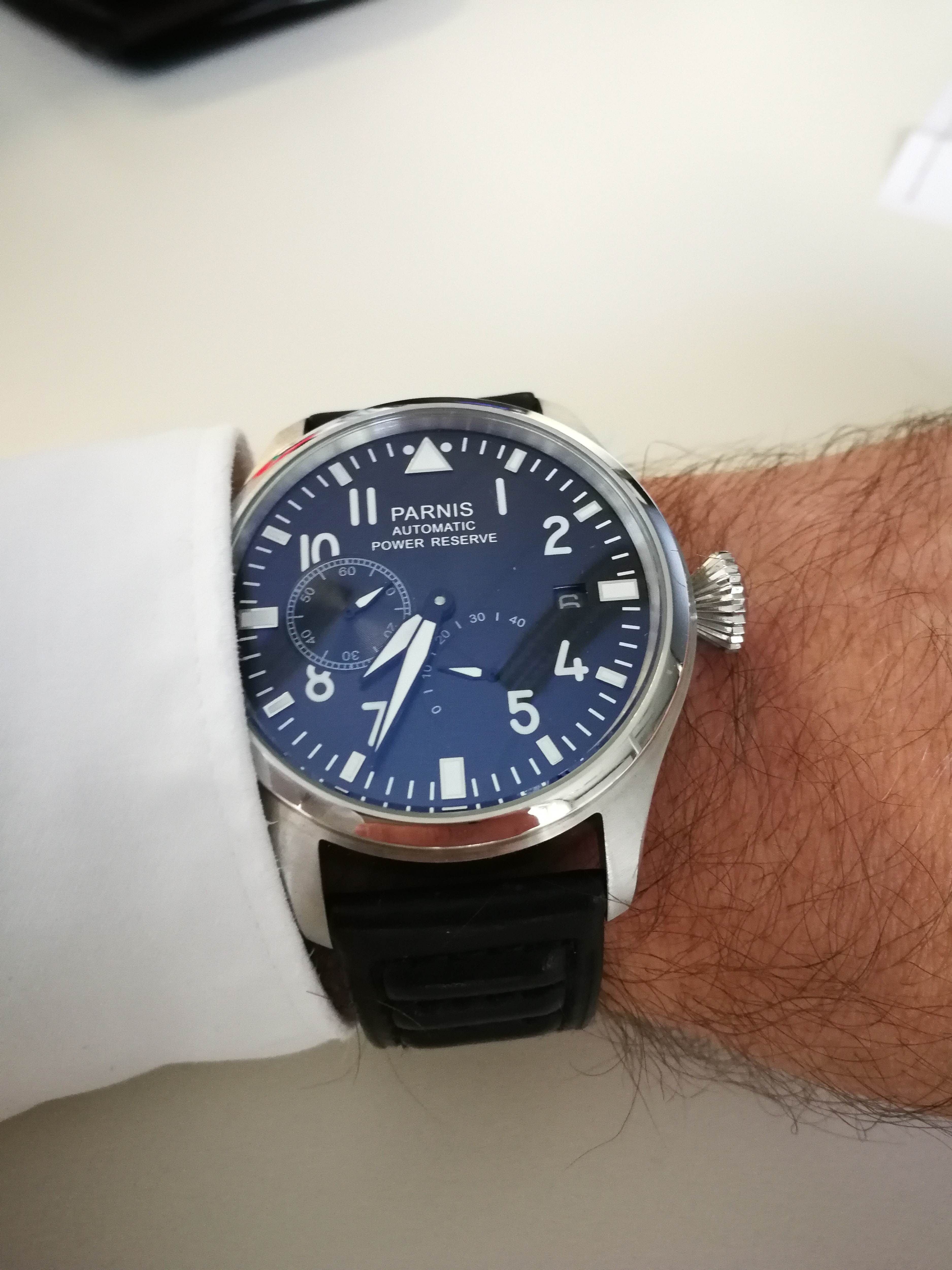 Das Arnband finde ich passend, eine der wenigen Uhren wo ich das Band nicht sofort getauscht habe.