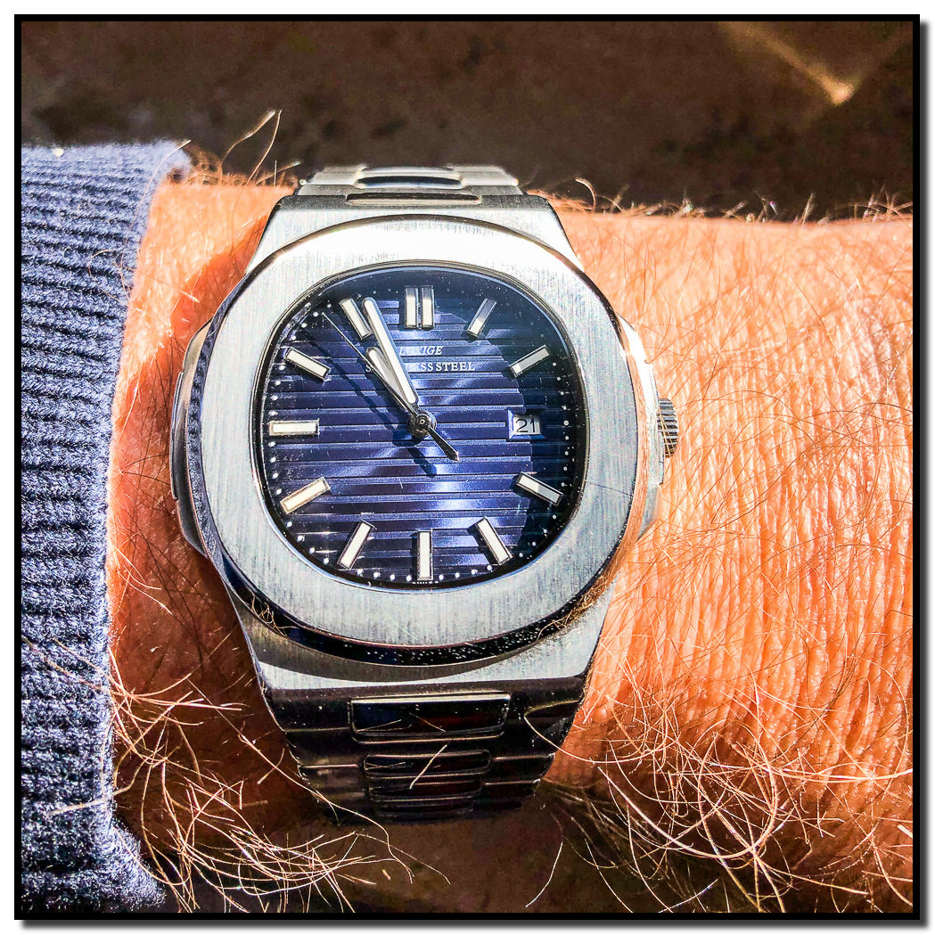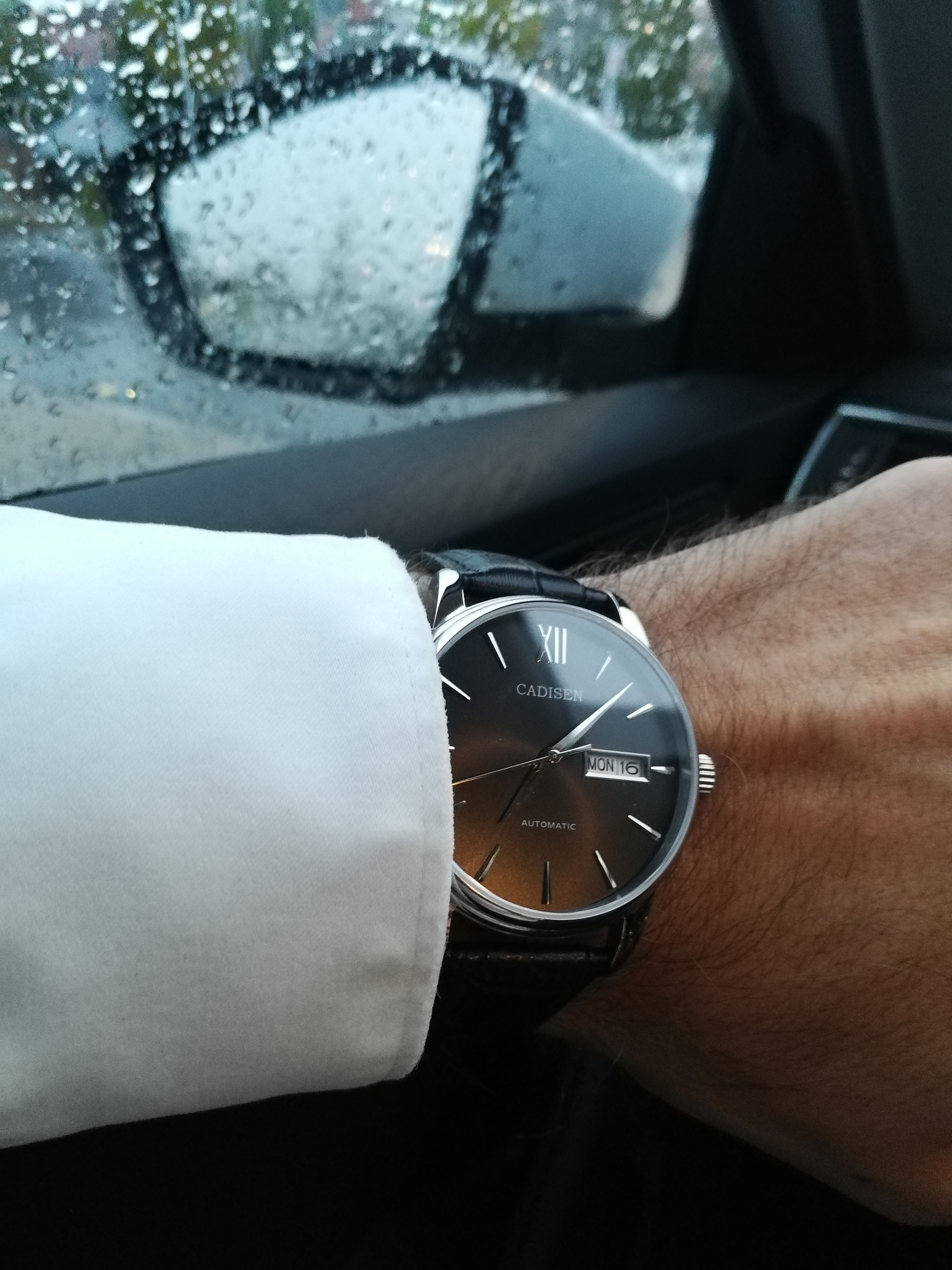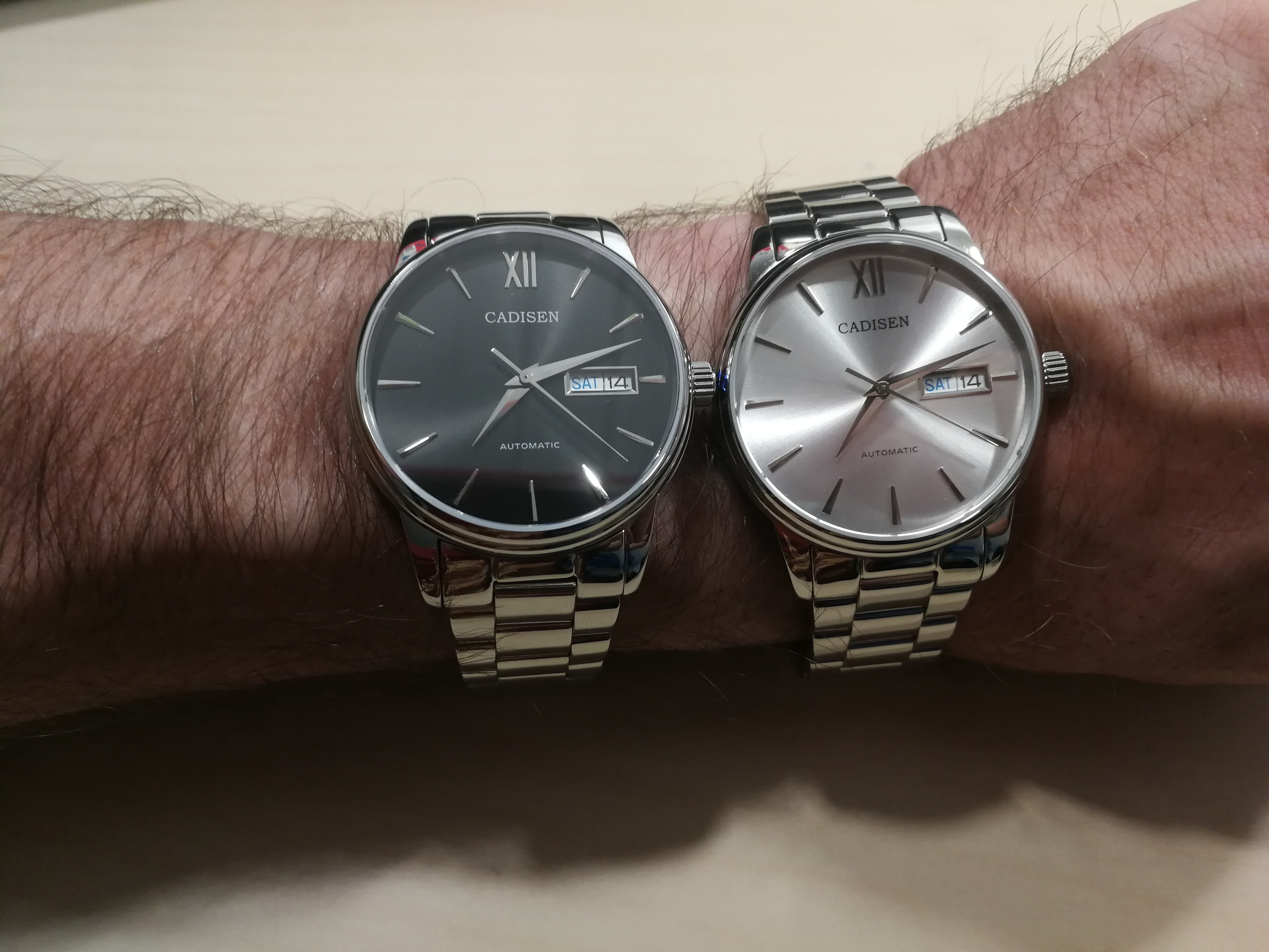 Jetzt aber wirklich die Cadisen in schwarz am Chinaleder, von dem ich jetzt beim Tragen positiv überrascht bin. Das Metallband ist "naja".