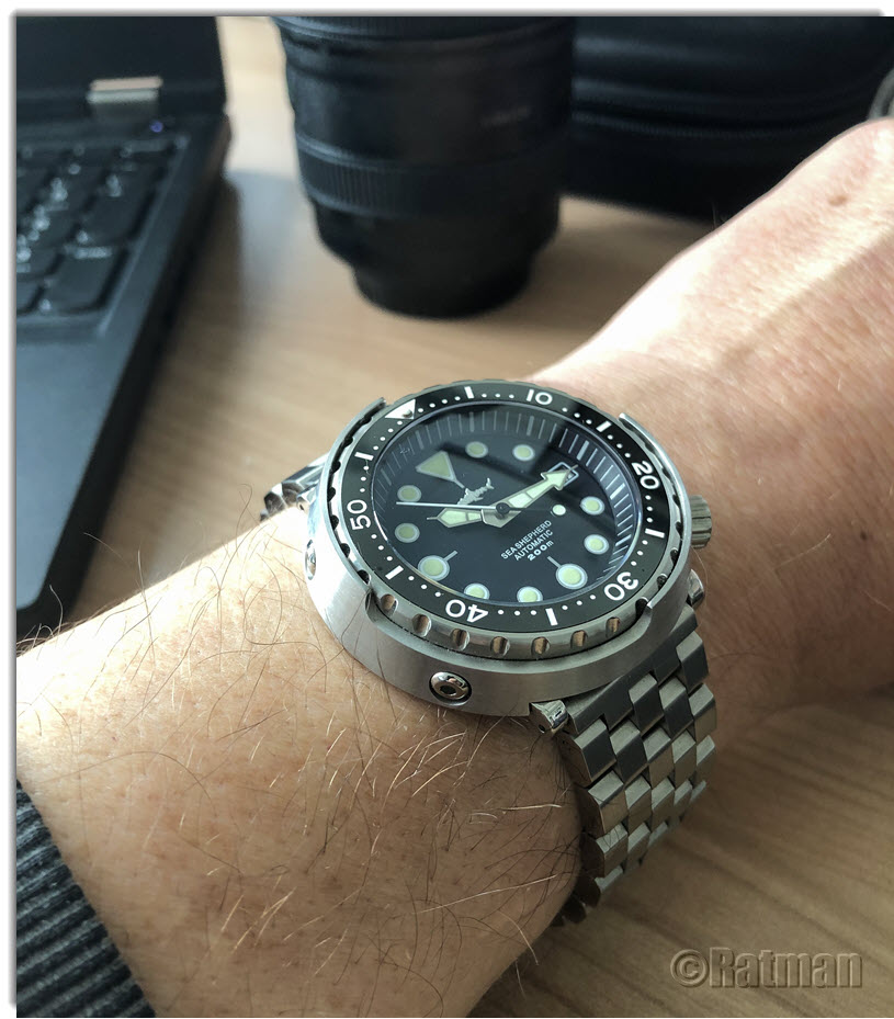 Erstmal am SeatBelt, ihr Stahlband trocknet nach ausgiebigem Ultraschall-Bad noch.