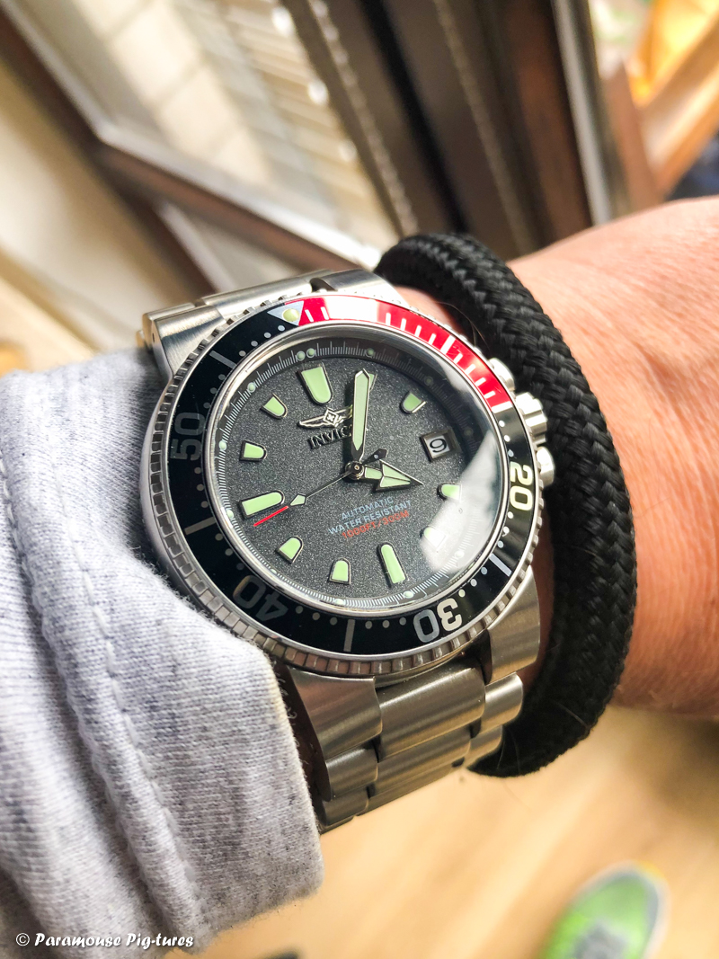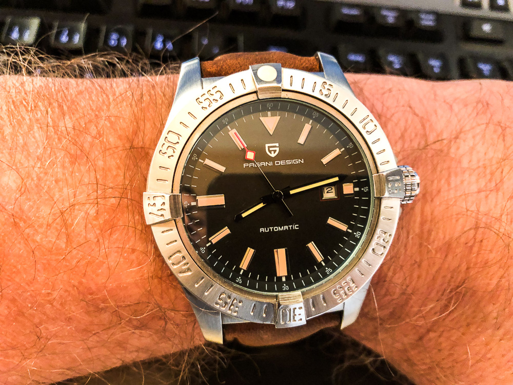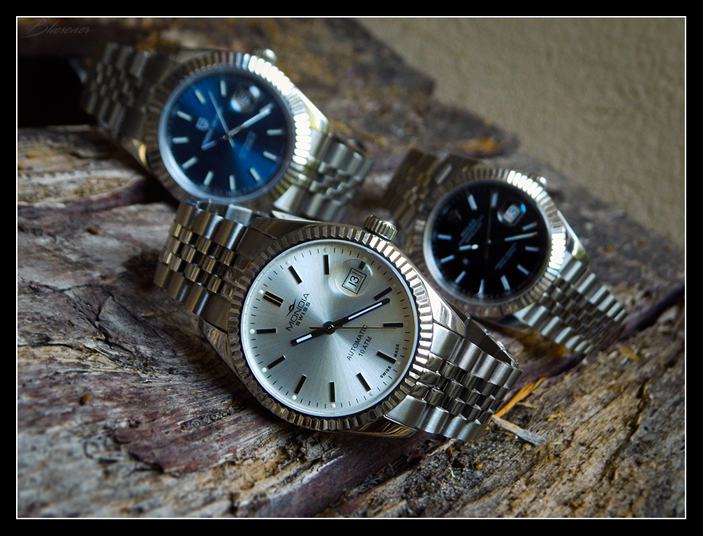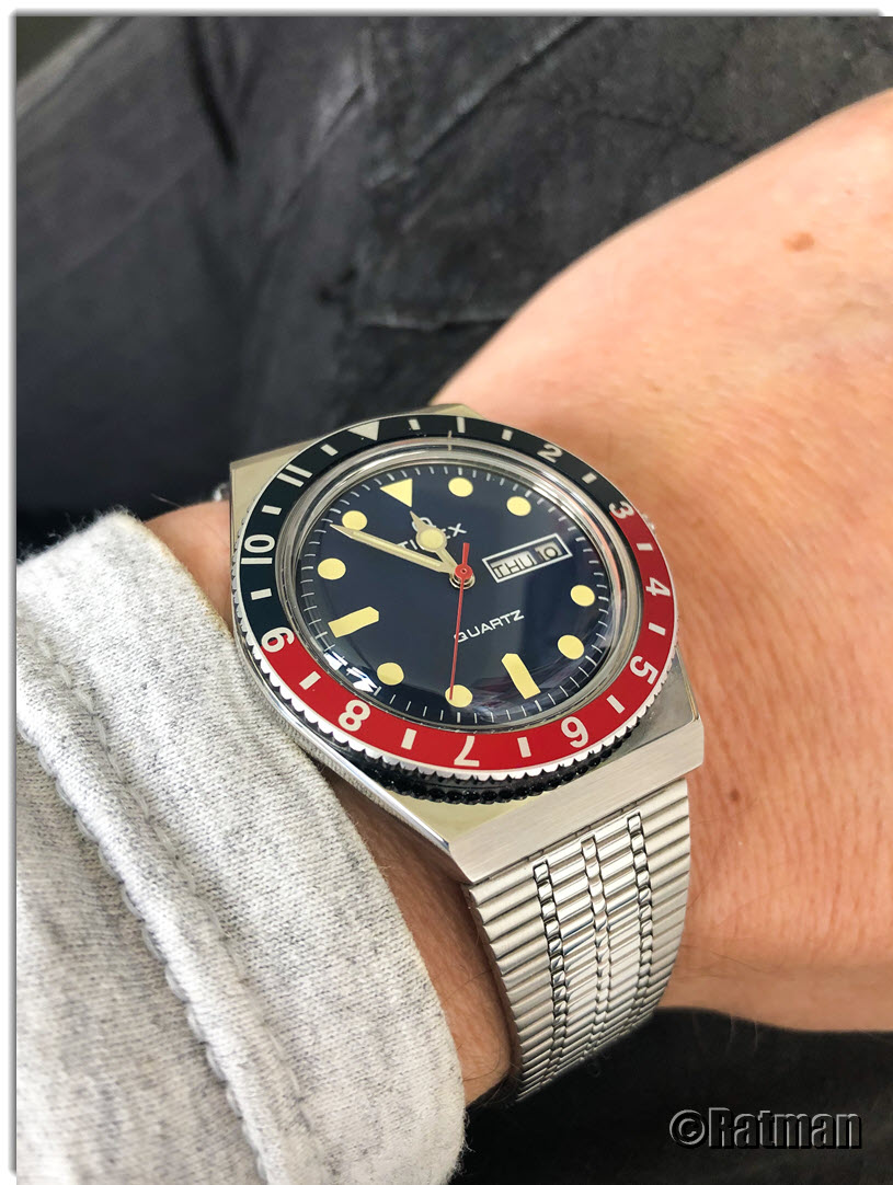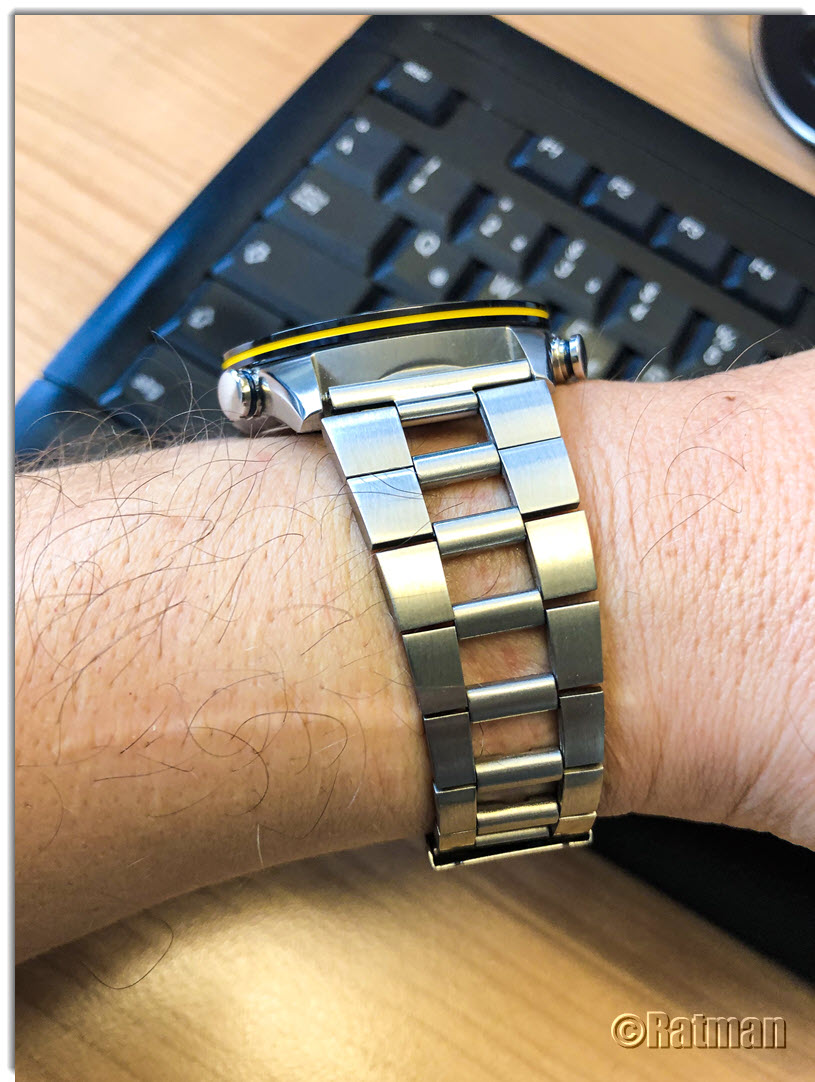 War ein Angebot im Uhrforum, und seitdem der Colonel diesen Ticker mal hier gezeigt hatte, ging er mir nicht mehr aus dem Kopf. Da musste ich zuschlagen. Da ich kein Leder trage, ist das Originalband kein Thema für mich. Und das montierte Milanaise gefiel mir nicht so recht. Also aus der Bänderkiste ein Stahlband aus den 70er/80 Jahren rausgekramt. Steht ihr nicht schlecht, wie ich finde. Wegen des 23er Anstoßes ist meine Auswahl an Bändern eh etwas eingeschränkt.