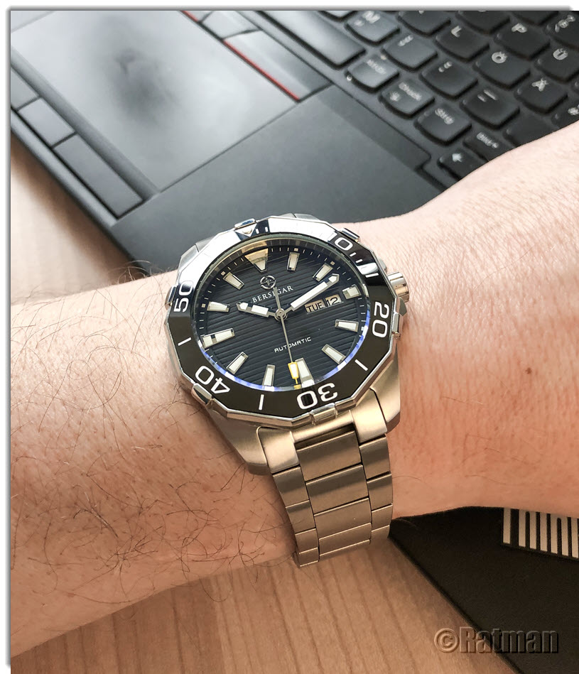 Ich besitze ja schon seit zwei Jahren die blaue Pagani AR und die "Desert Racer" vom gleichen Hersteller. Und hatte eigentlich immer den Wunsch nach der Version mit schwarzem ZB und Inlay. Und da die meisten im Forum mit der Bersigar zufrieden waren und die gerade bei Amazon mit Gutschein für 79,99 inkl. Versand abgeboten wurden, musste ich zuschlagen :