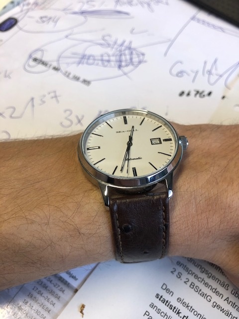 --> Ich bin immer wieder überrascht, dass die Wertigkeit einer Uhr über das Band entsteht. Schrottband = teure Uhr sieht billig aus, gutes Band = Schrottuhr sieht top aus!