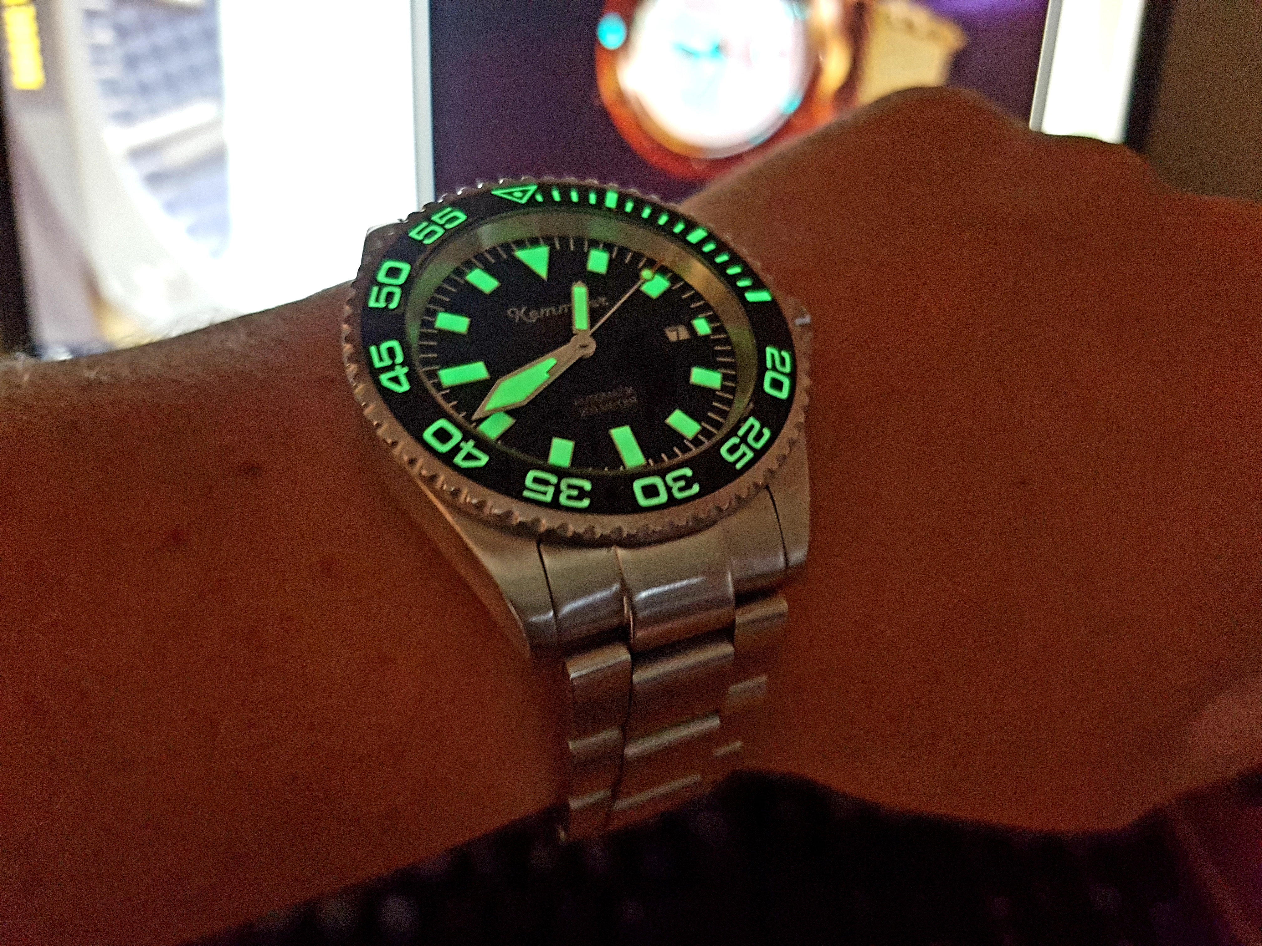 Meine INVI -8926- (O-Mega Lünette) war, bis eben auf die Lume, für ihren Preis wirklich