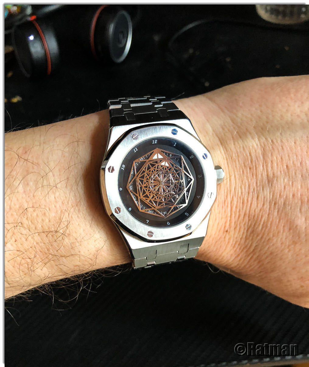 Machte in der Woche am Arm ca. 30 Sekunden minus Angenehme Größe, schönes, schlichtes Design (wobei mit die goldenen Akzente gefallen...)