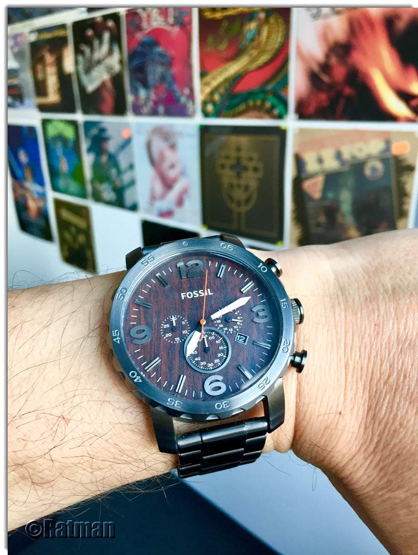 Bei mir heute der Neuzugang: Fossil Nate JR1355. Großer, schwerer Klopper mit 50mm Durchmesser und fast 200g Gewicht. Die hatte ich schon ein paar Jahre auf dem Radar, war mir für eine "Modeuhr" aber bisher immer zu teuer. Nun kurzentschlossen für 60,- EUR in der Bucht geschossen. Bis auf eine paar Kratzer an der Schließe sehr guter Zustand.