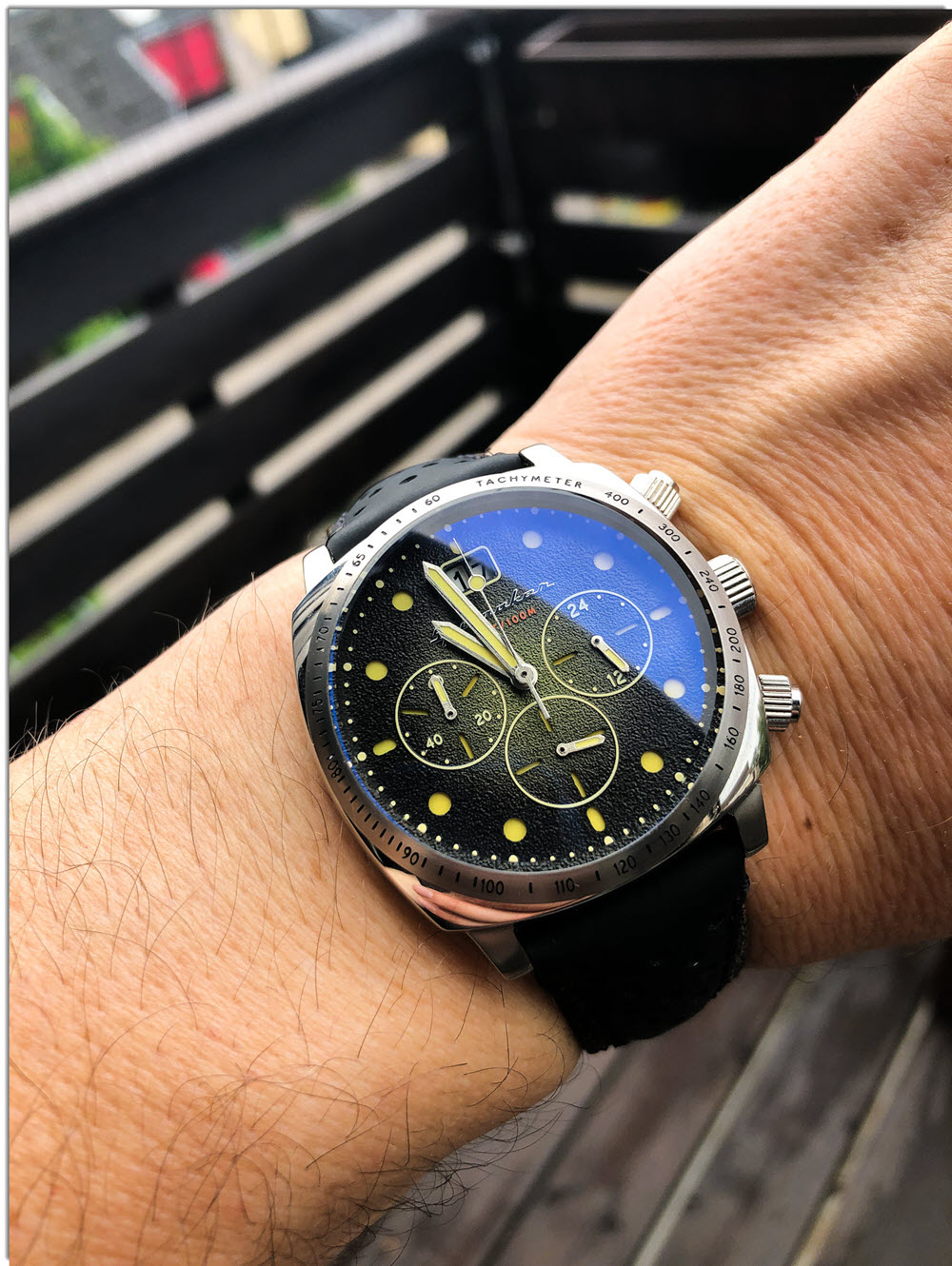Mir gefällt die Uhr sehr gut, werde eventuell Ausschau nach einer mit weißem Zifferblatt halten.