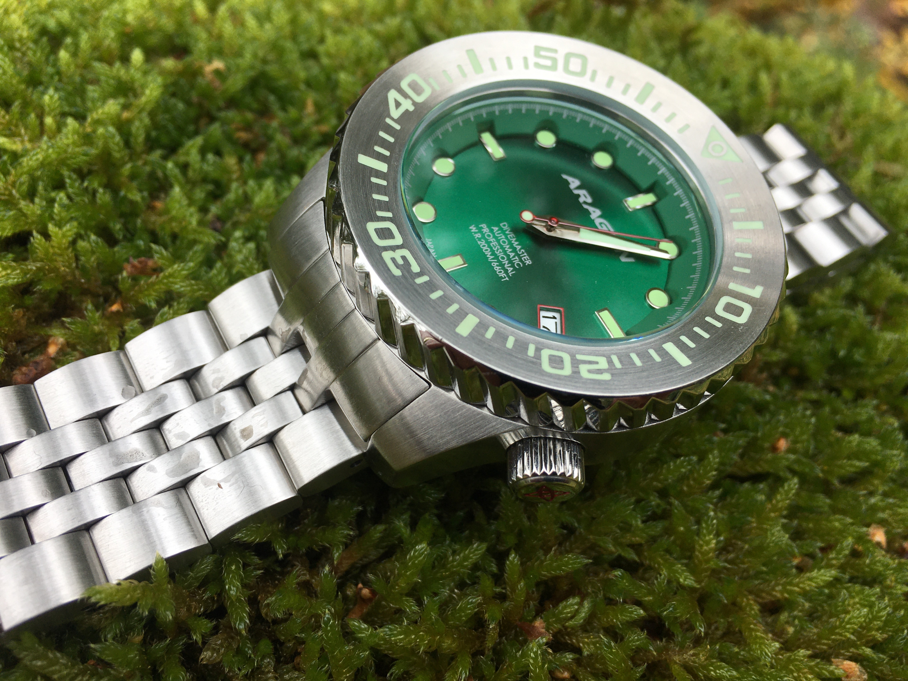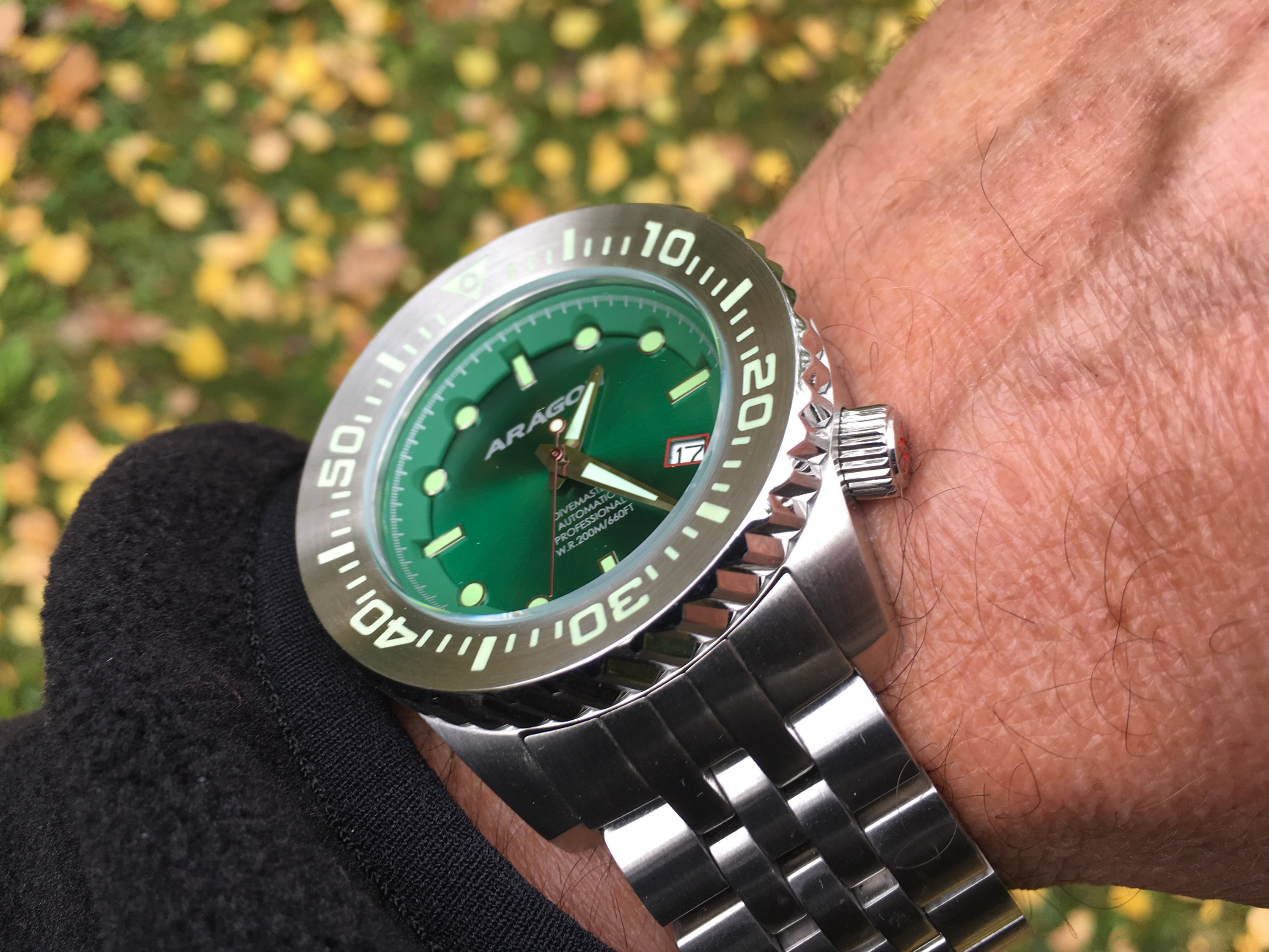 Also wenn man auf toolige Diver steht und keine Angst vor einem halben Pfund Edelstahl am Handgelenk hat, kommt man an den Divern von Aragon fast nicht vorbei.Lucky schrieb: Also mir gefällt sie sehr gut. Ich wollte mal einen Tooldiver. SUB Stil ist auf die Dauer ziemlich langweilig.Ist schon fett und schwer, trägt sich aber recht angenehm.45mm ist noch im Rahmen bei HGU 18. Die Höhe stört eigentlich gar nicht.So kommt die tolle Lünette richtig zur Geltung.Auch das Edelstahlband ist perfekt, da die Glieder auch schön dick sind.Mir gefällt sie in grün absolut am besten!:mrgreen