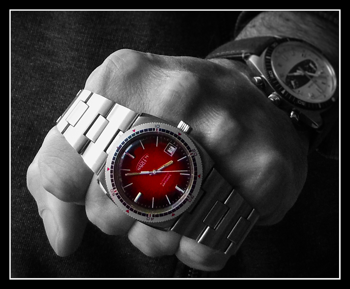 Hab das Bild noch einmal bearbeitet, die schöne Bulova hat auch etwas Farbe verdient