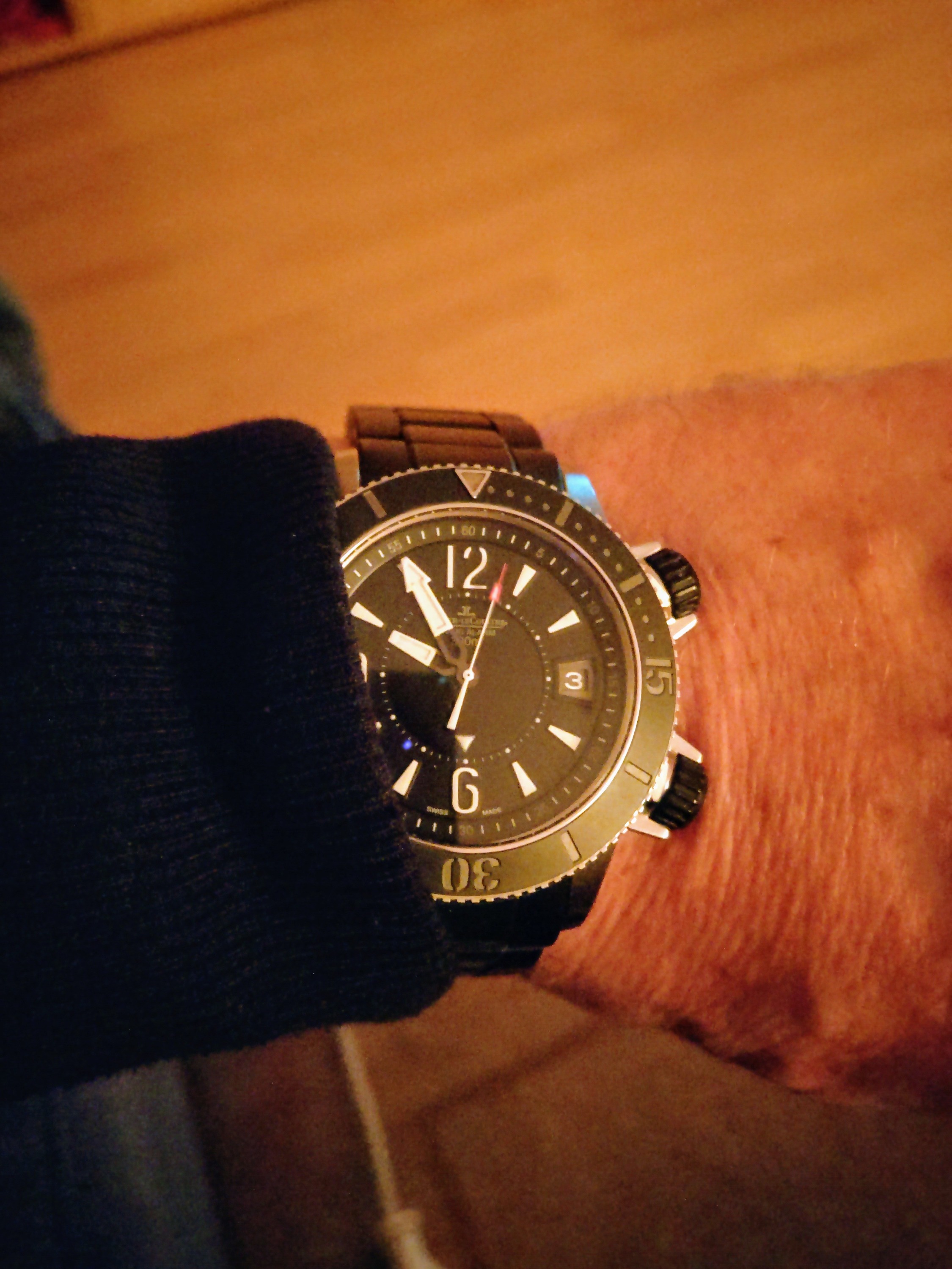 Die Uhr selbst hat einen Durchmesser von 36mm, und ist / soll die flachste Taucheruhr sein.