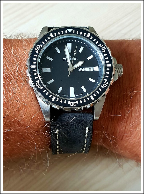 Ich muss sagen, die Alpha ist "nur" meine zweitliebste Uhr, denn mein absoluter Favorit ist die Dugena Imola XL, die auch heute am Arm ist.