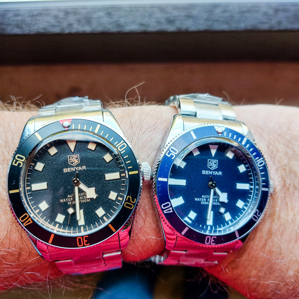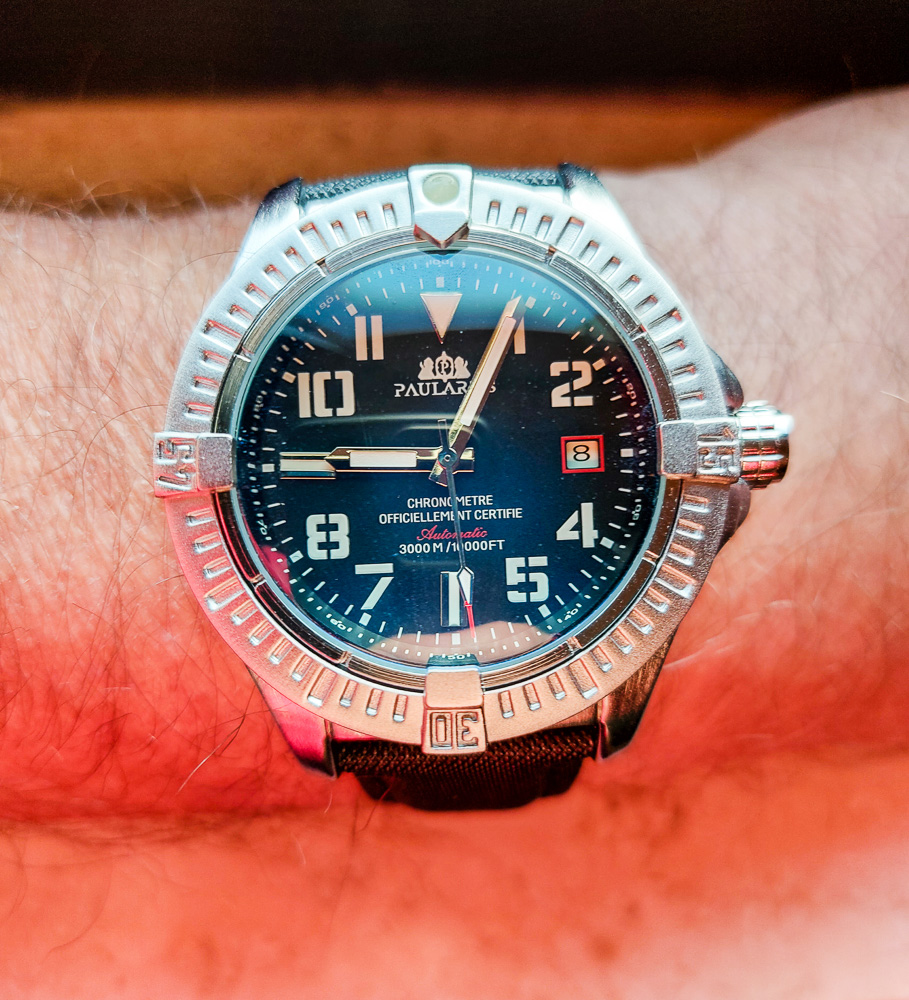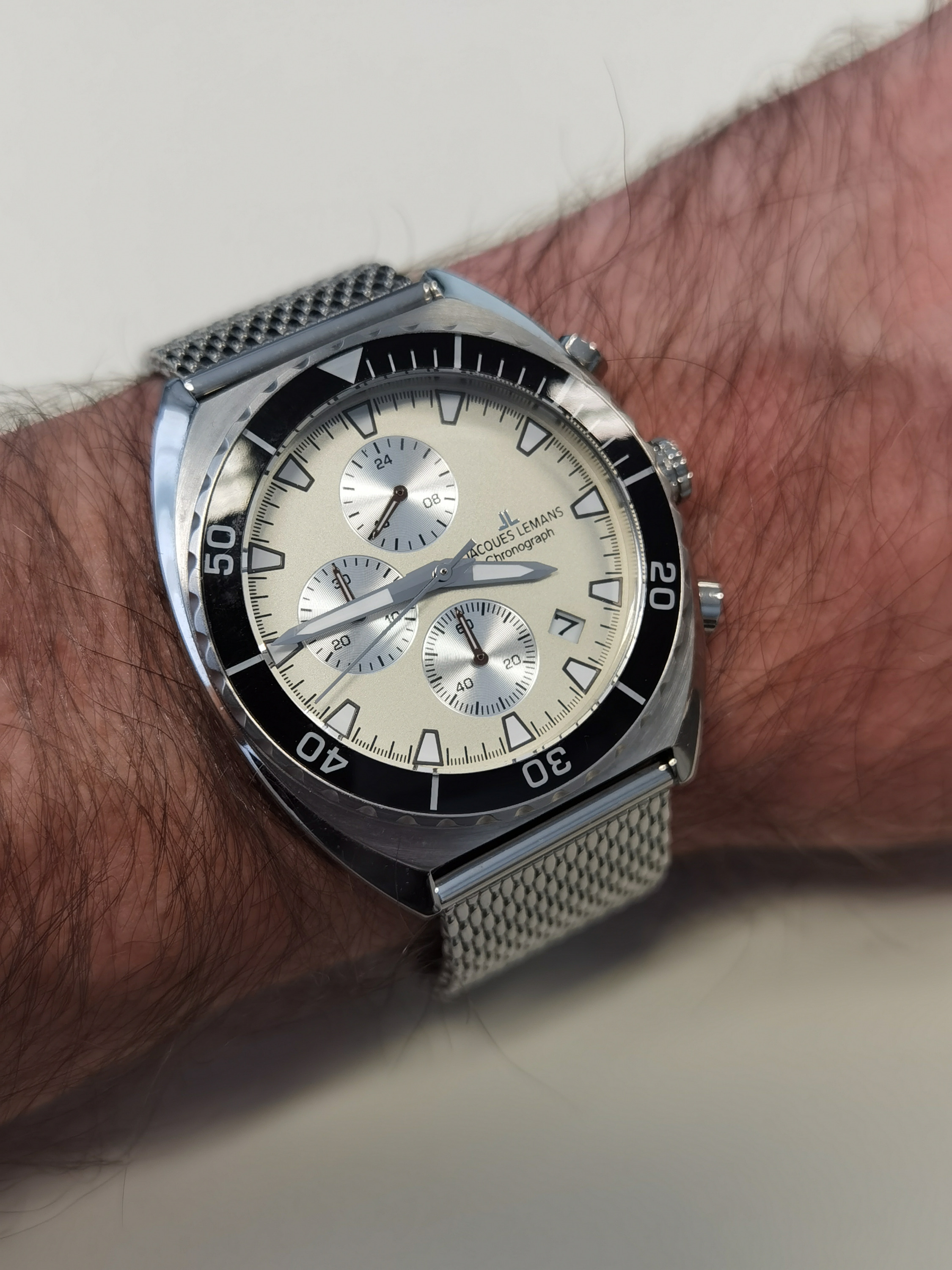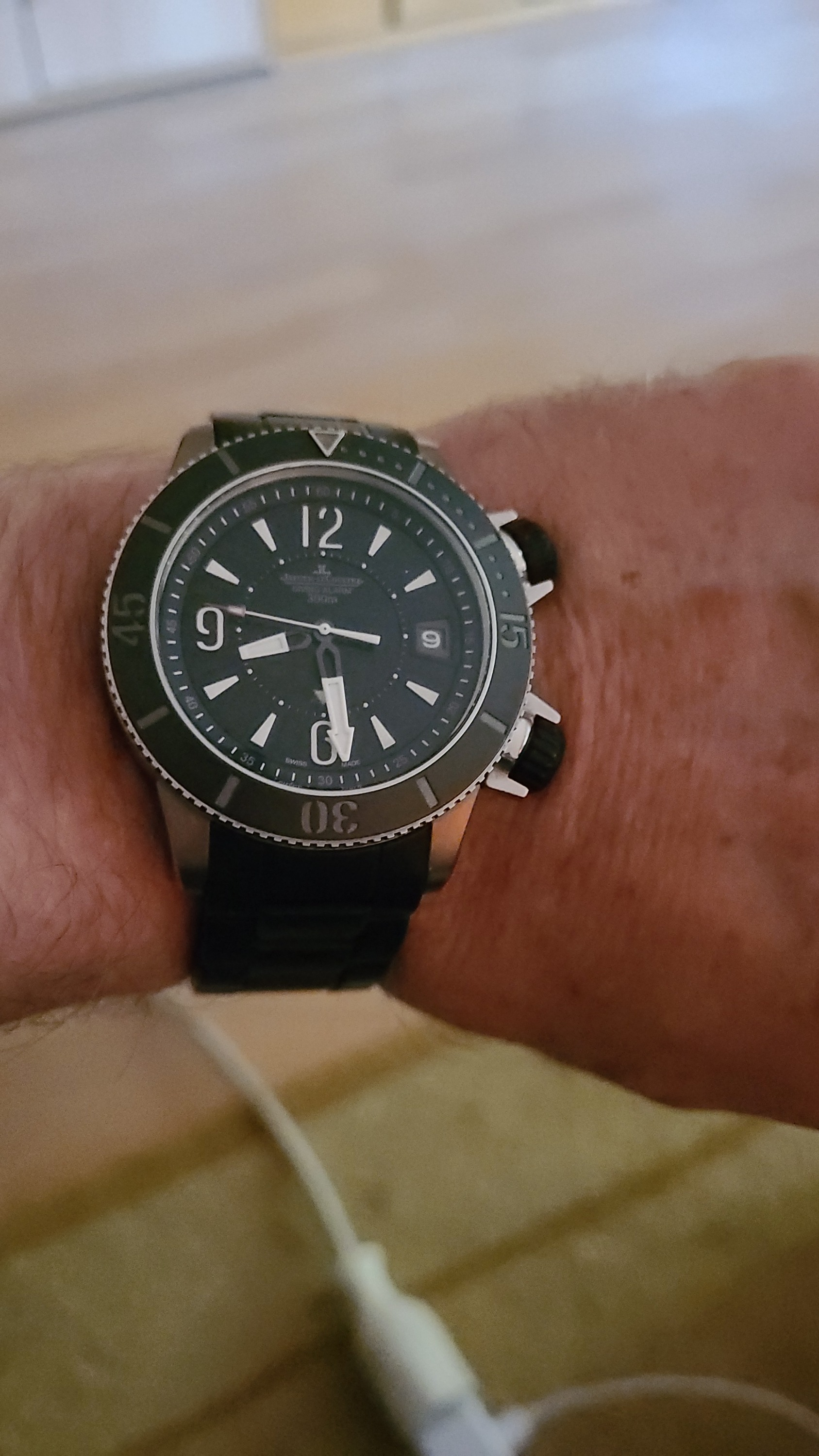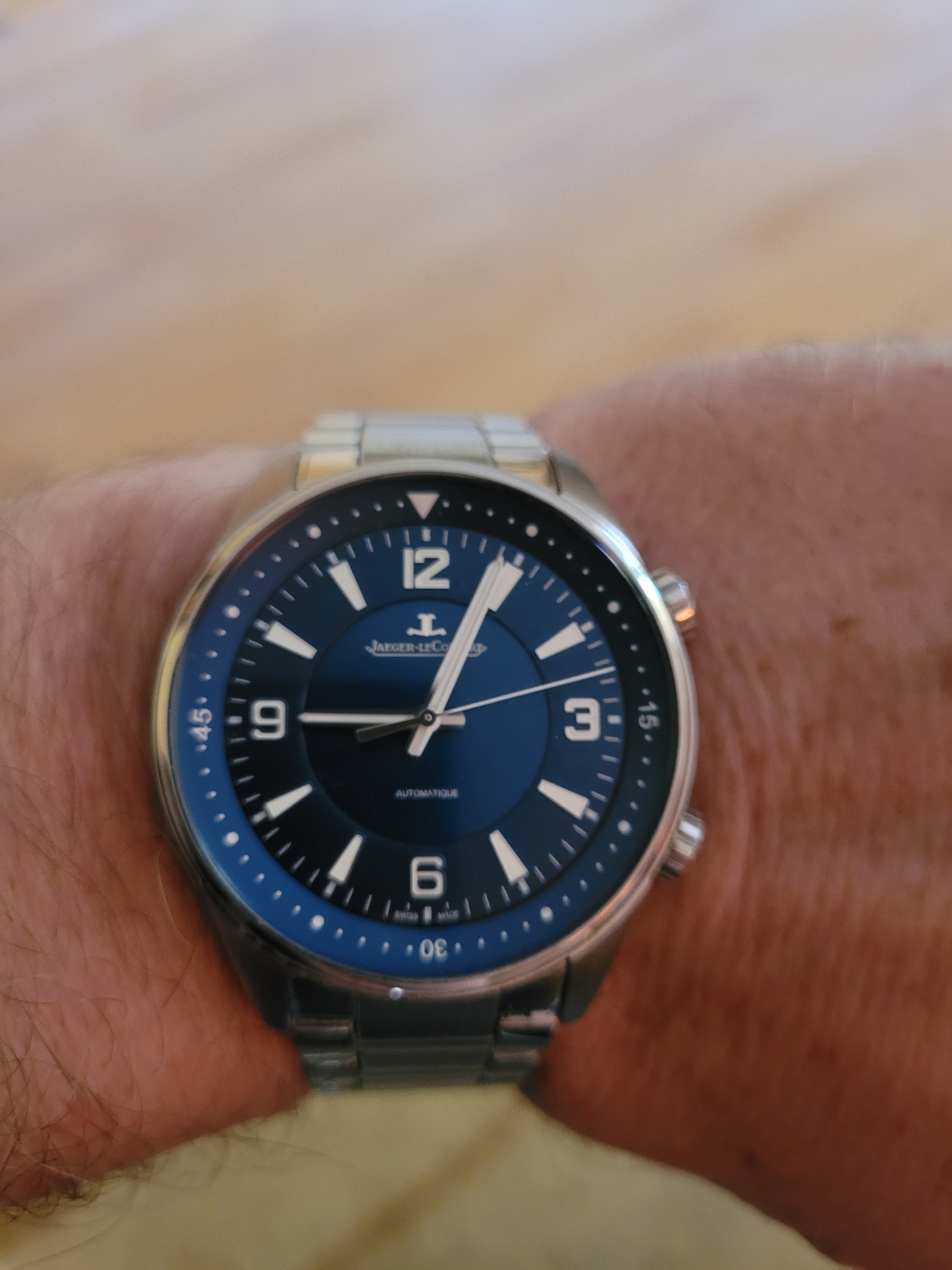 Zurück zum Thema: Heute hab ich mir die Delorean "Piston" an den Arm geschnallt. Man beachte, dass sie ein echter Chrono ist, anders als ihre Brüder mit dem schrottigen Millionsmart Automatik-Werk. Im Hintergrund ein Porsche 917 in GULF Livery