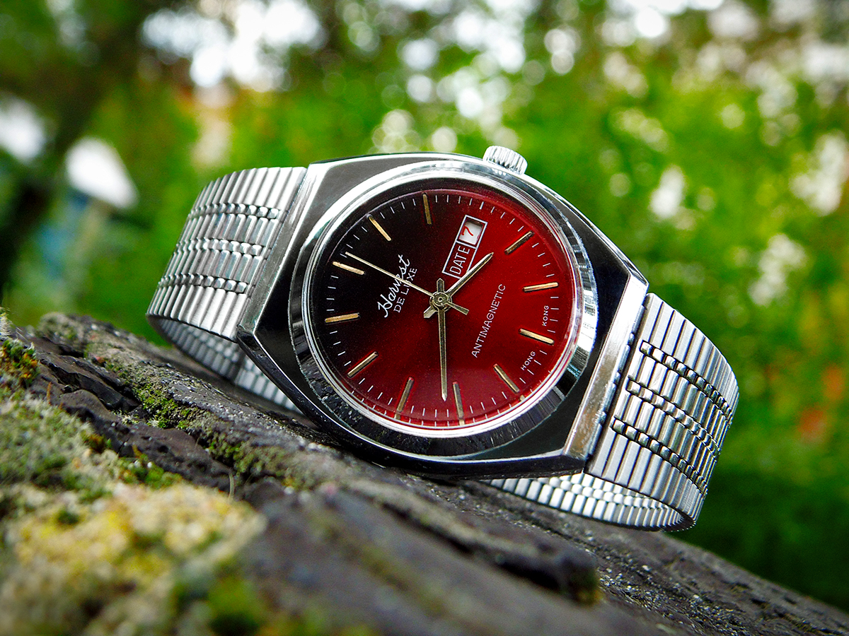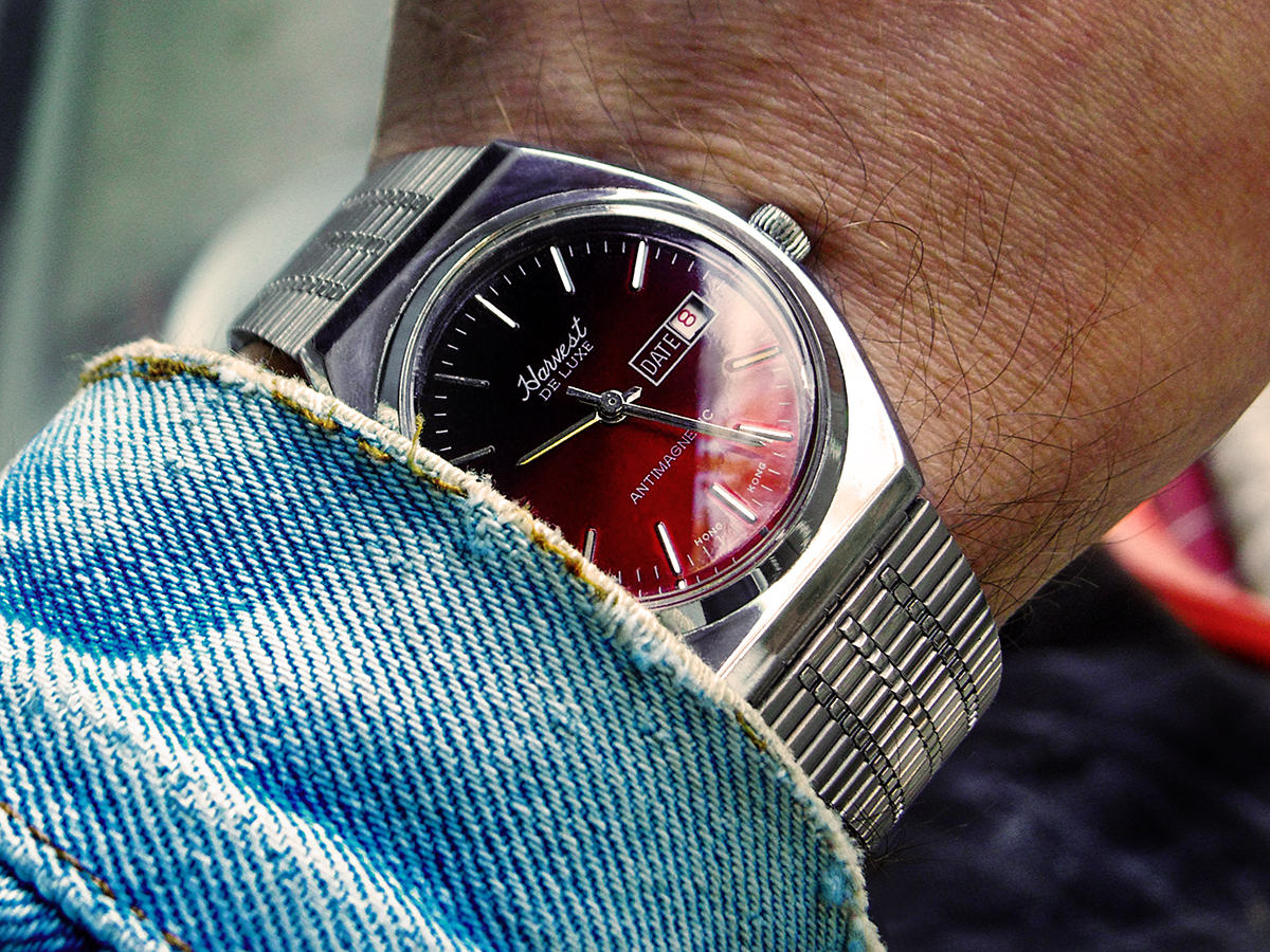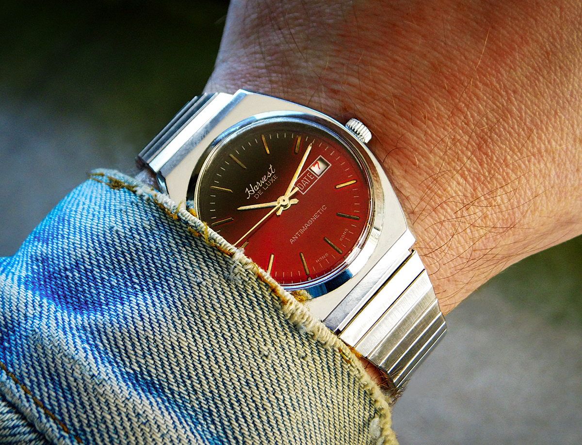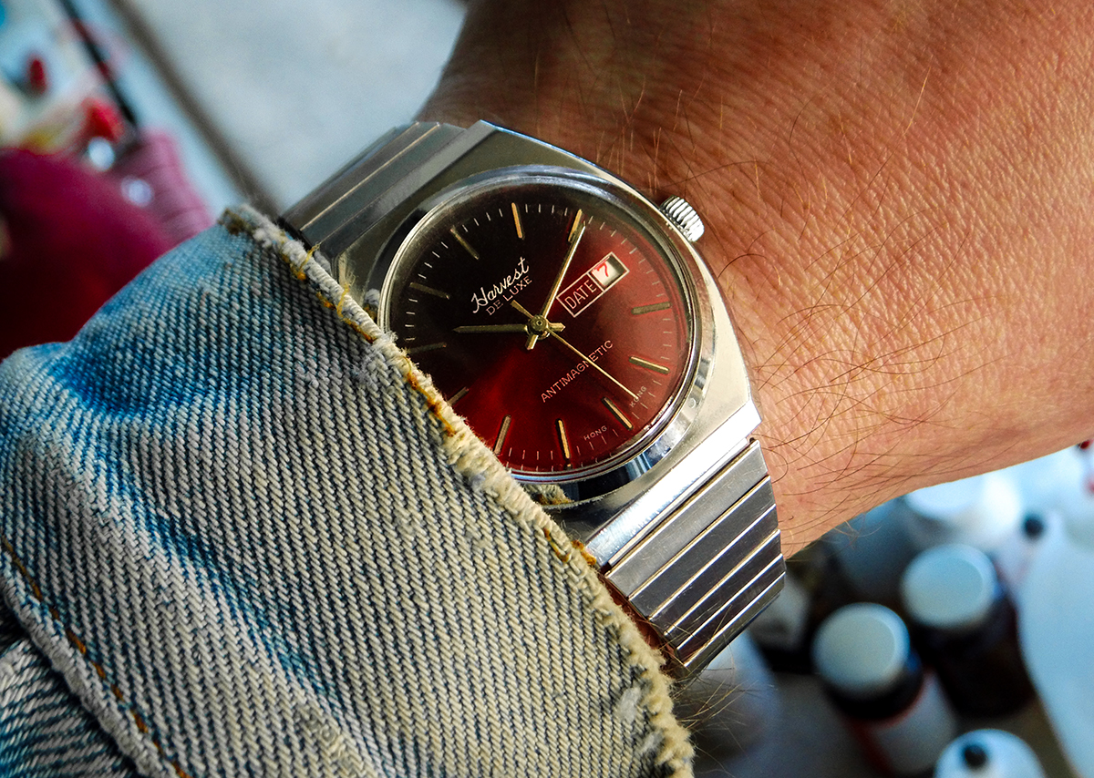 Neuzugang: Harvest De Luxe. Laut Verkäufer angeblich aus den 60ern. Sollte jemand Infos zu dieser Uhr oder der Marke haben, laßt es mich bitte wissen