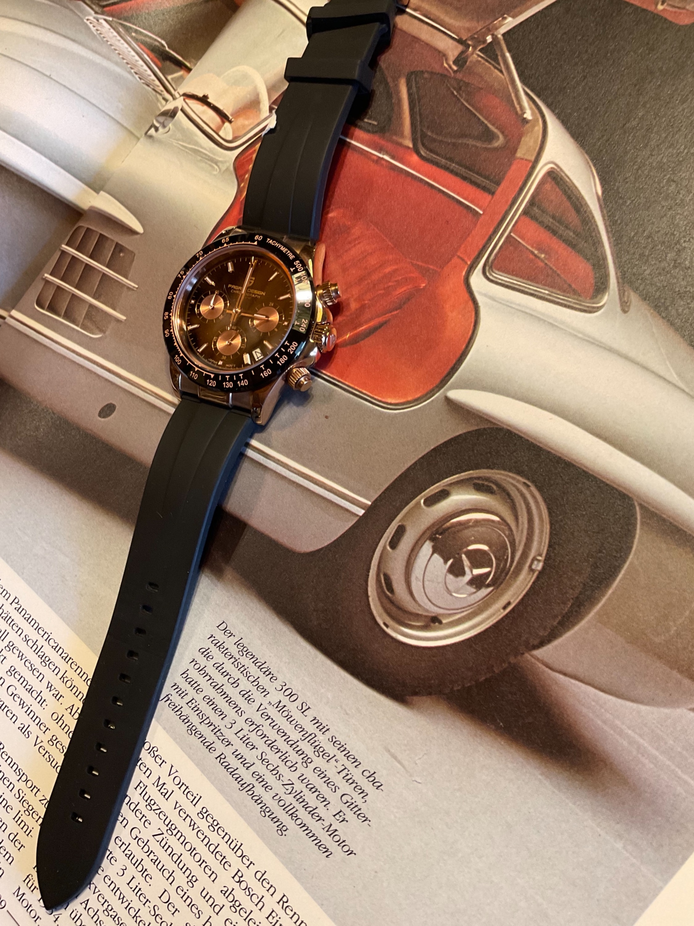 08 Okt. 2021 07:11 - 08 Okt. 2021 07:15Möchte dazu noch eine etwas ausführlichere Erklärung-Erläuterung-zu diesen inzwischen zum Kultstatus gewordenen 300 SL abgeben. Dass für viele einen Traum verkörpert! Ich finde mit ein paar Zeilen erfolgt dafür nicht die gerechte Würdigung! Ich werde versuchen an anderer Stelle-hier in der Uhren Vorstellung ist es doch etwas deplatziert-meine Meinung dazu kundzutun.Der 300SL Flügeltürer wäre jetzt nicht unbedingt mein Traumauto. Zugegeben, die Gullwings sind stylisch, aber die Mühle ist relativ lahm, laut und es wird irre heiß in dem Ding. Und dafür legt man dann noch eine bis mehrere Milliönchen auf den Tisch des Hauses. Vom Unterhalt mal ganz abgesehen.