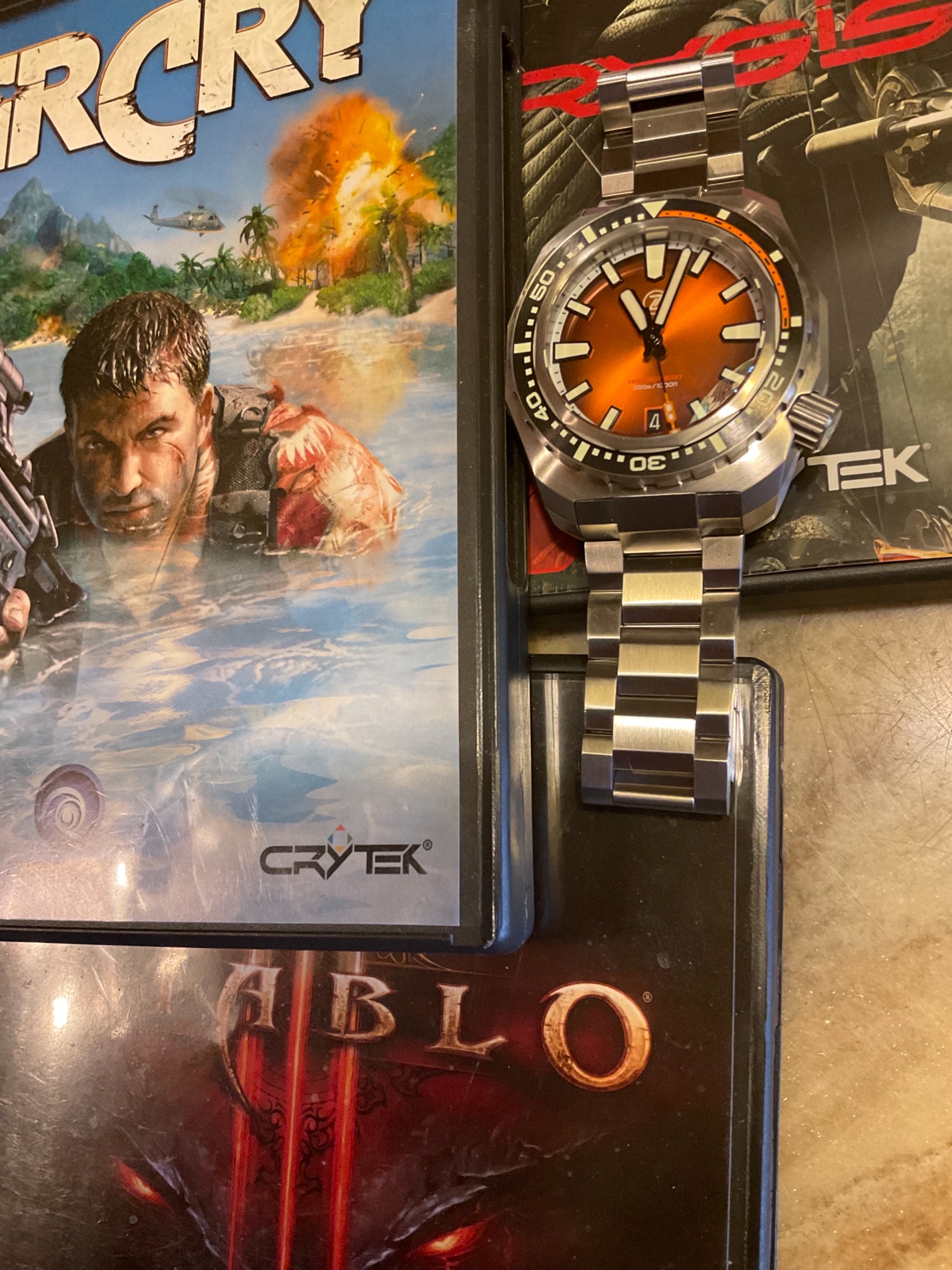 Heute die Zelos Hammerhead V3 Crimson red, statt am Arm, heute in Begleitung von FarCry-Erstauflage-, Diablo 3, und Crisis 3.