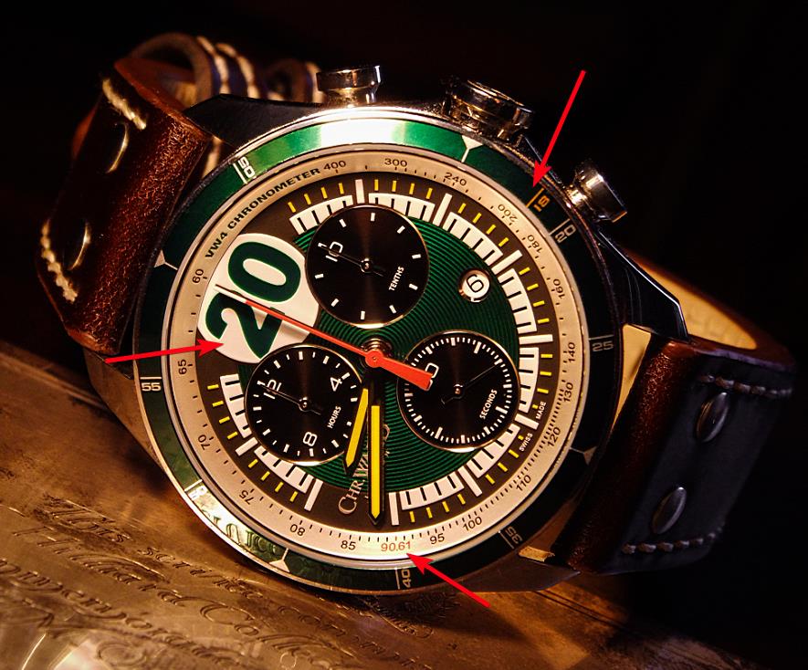 Das faszinierende an der C 70 Uhr ist ihr Racinggreen, das sind die Farben des britischen Rennstalls Vanwell!