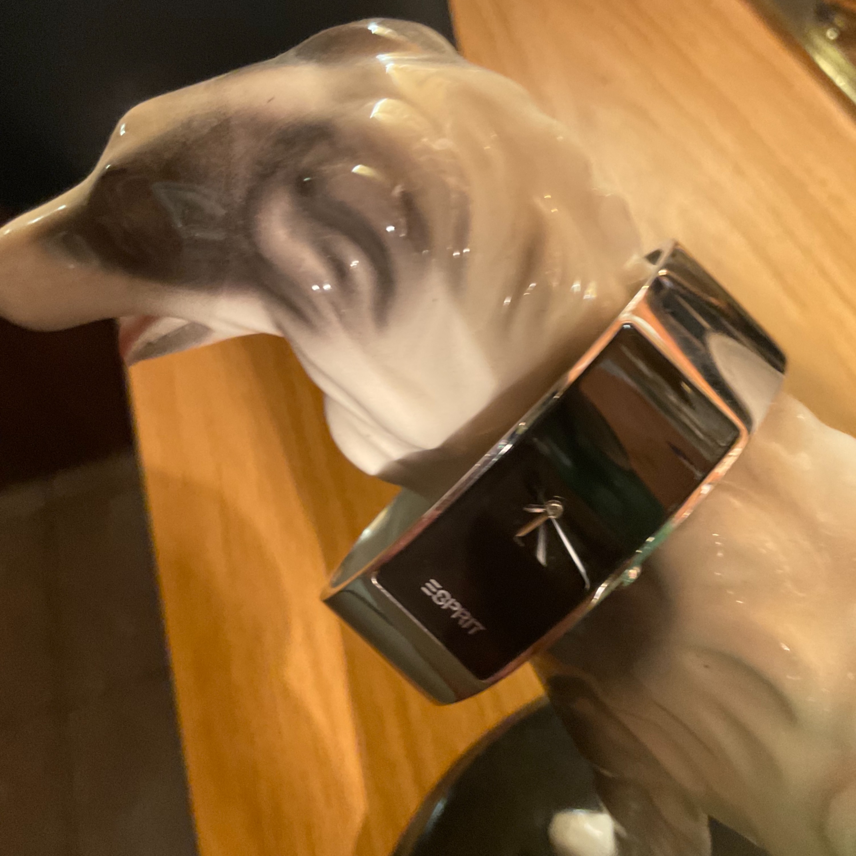 Inspiriert durch eine seiner Vorstellungen habe ich mir auch eine Armreifuhr gekauft. Leider passt das zierliche Stück nicht auf mein Gelenk, und dehnen läßt es sich auch nicht. Es ist die Marke „Esprit“ von den Kaufhot Gallerien.