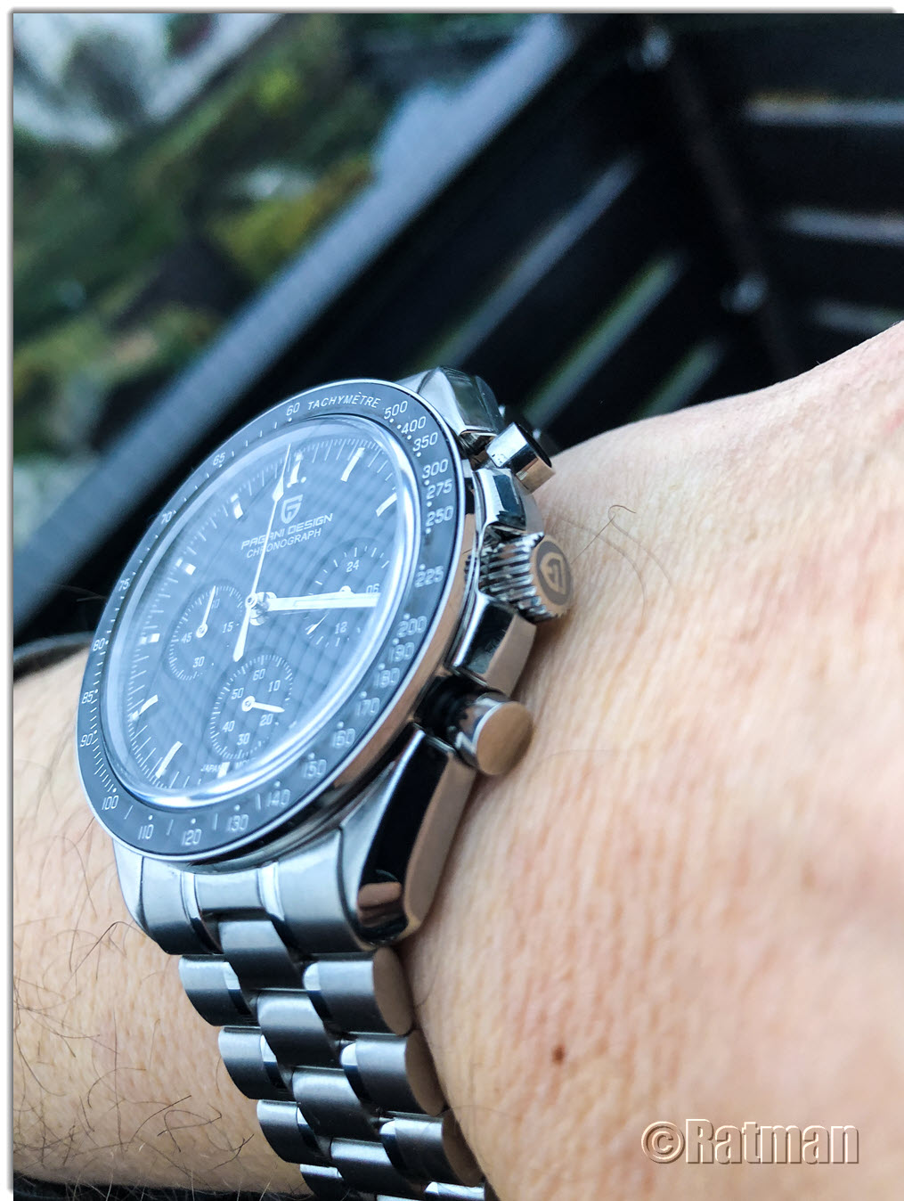 Na gut, bei all den Moonwatches, die ihr hier zeigt, kann ich ja gar nicht anders als euch meine neue Pagani vorzustellen. Wie an anderer Stelle schon geschrieben sollte die neue PAGANI Moonwatch ja vom Aussehen her näher ans Original rücken, mit größeren, näher zusammen liegenden Totis usw. Leider ist daraus nichts geworden, was mich dazu veranlasst hat, einen Disput zu eröffnen, wodurch ich einen teilweisen Refund rausschlagen konnte