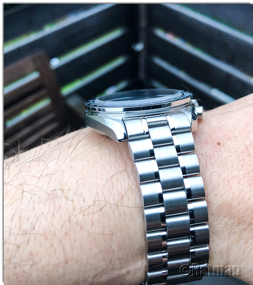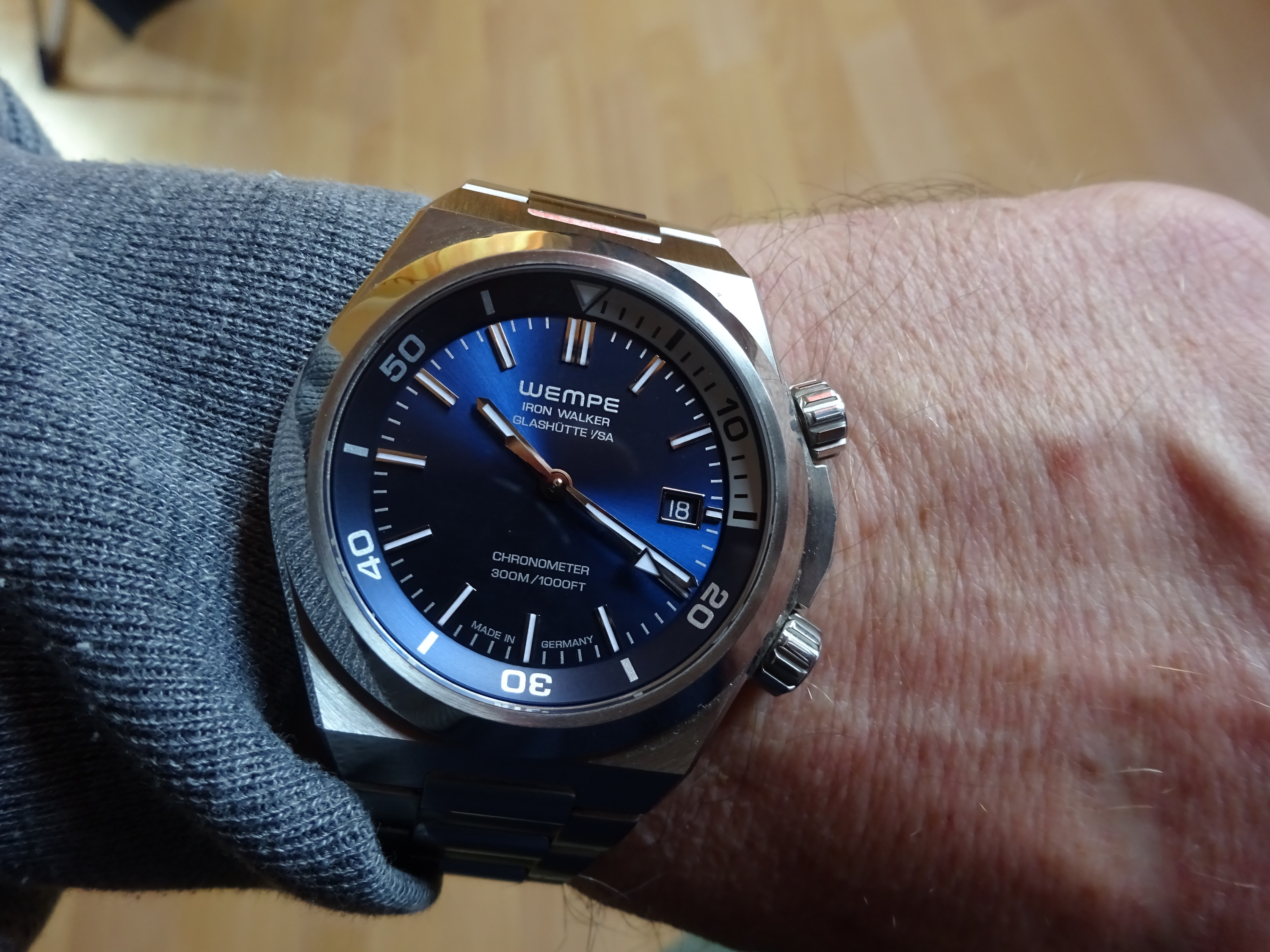 Das Ührchen ist nicht schlecht, sauber gefertigt, keine scharfen Grate oder so. Gewölbtes Saphirglas und VK63 Werk hat die Kleine. Das Band ist eines der Besseren. Stramm, aber nicht übertrieben fest sitzende Stifte, Massive Schließe mit gut funktionierender Ausklapp-Verlängerung. Was will man - für den Preis - mehr verlangen? Ein Bond-Nato gab es noch obendrauf, sogar mit dem Namen des Luxusuhrenherstellers auf der Schließe