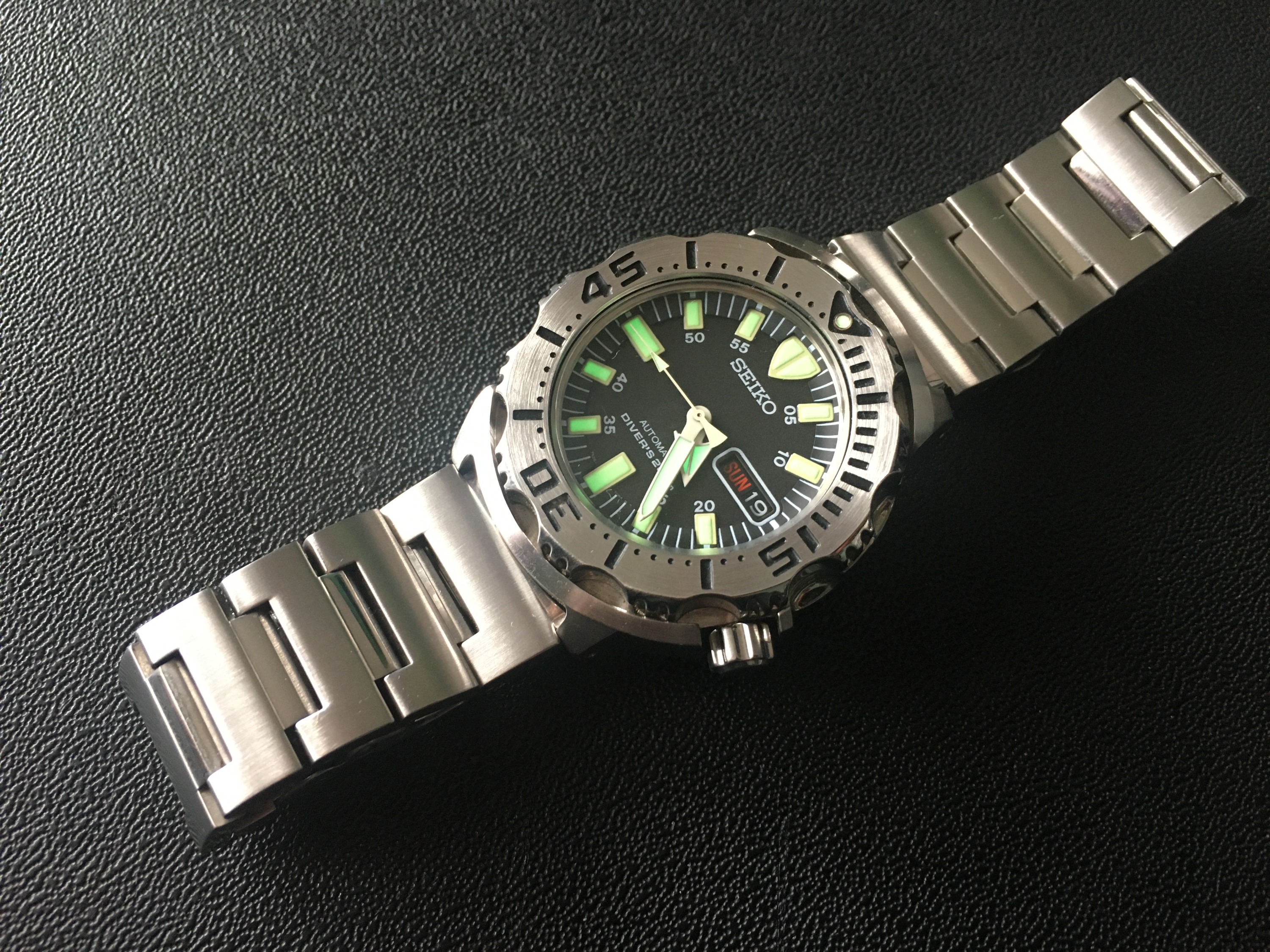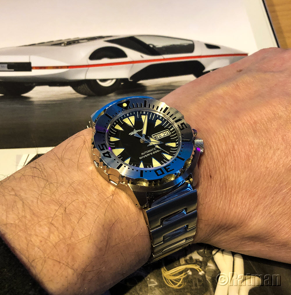EDIT: Der zweite Grund, warum ich nicht immer der Meinung bin, dass das Original besser sein muss: Gerade bei Seiko ist ja auch nicht immer alles Gold was glänzt. Zu oft hört man von schiefen Indizes, schlecht gesetzten Zeigern oder nicht korrekt zentrierten Lünetten-Inlays. An meiner Heimdallr Monster gibt es in dieser Hinsicht nichts auszusetzen, und zumindest das Innenleben ist ja weitgehend baugleich zum Original. Aber versteh mich nicht falsch, ich bin eigentlich ein Seiko-Fan. Die haben schon einige ikonische Ticker geschaffen und zu der kleinen Seiko-Fraktion meiner Sammlung werden sich sicher noch weitere Modelle hinzu kommen.