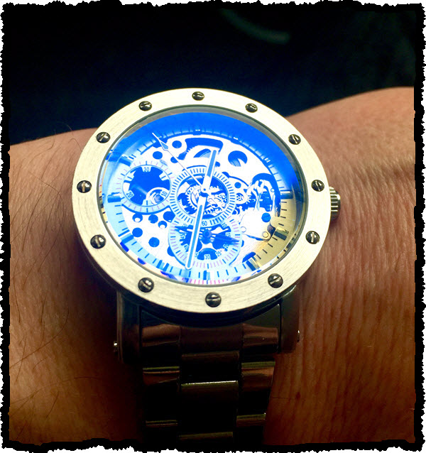 Und da wir grad davon sprechen, hab ich mir das gute Stück heut mal an den Arm geschnallt.