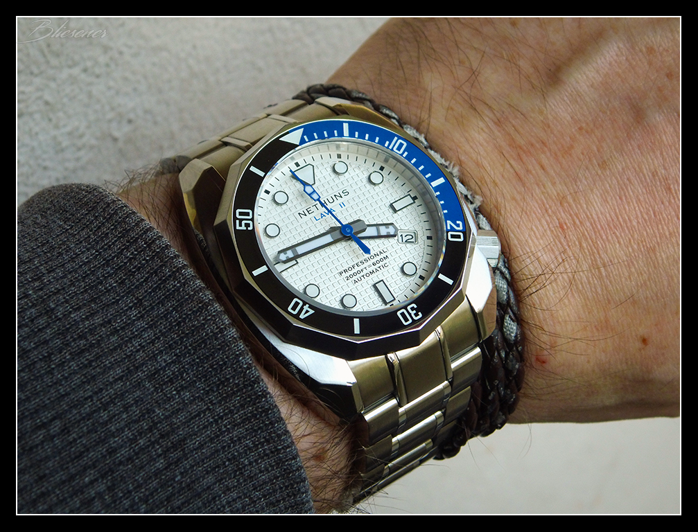 Ich muss sagen, dass die Farbkombi nicht mein Favorit wäre und ich wundere mich schon fast, dass du nicht die Bronze-Variante genommen hast. Oder hast du die etwa schon? Wie auch immer; An sich gefällt mir die Uhr recht gut, aber ich hadere mit der Kombination aus dem etwas "pummeligen" Gehäuse (bei Seiko würde das wohl "Turtle" heissen) und der eckigen Lünette. Pluspunkte auf jeden Fall für die blaue Lightshow auf Blatt und Lünette