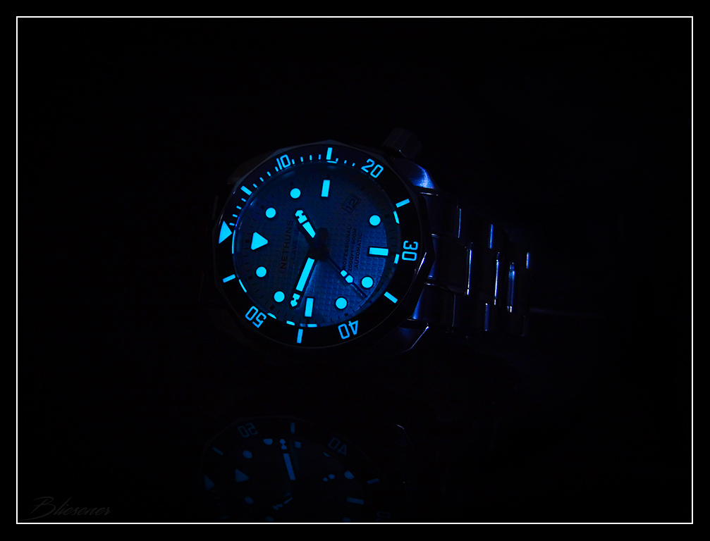 Ich bin total begeistert von dieser Uhr, hat mehr oder minder ein eigenständiges Design, ist schön fett , klobig, schwer und meine Lume-Sucht wird auch voll und ganz befriedigt