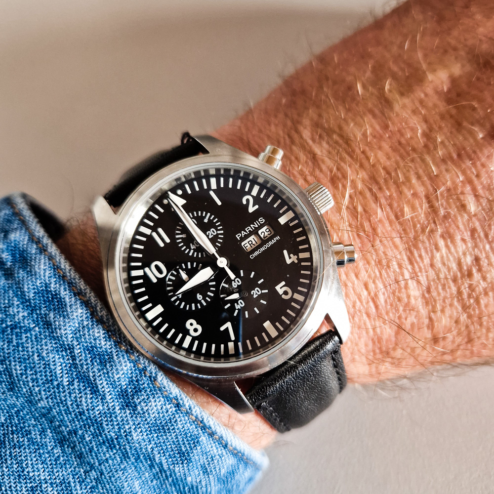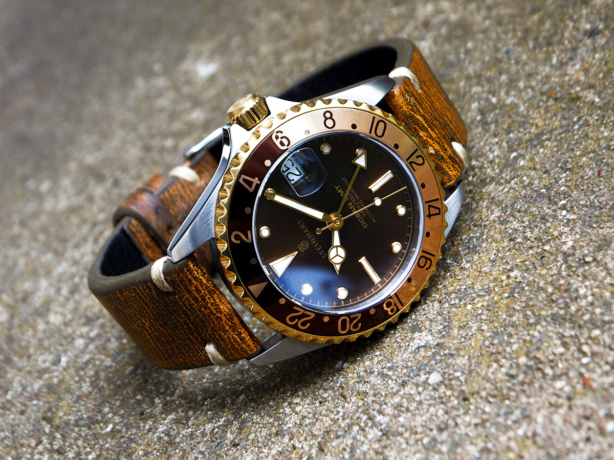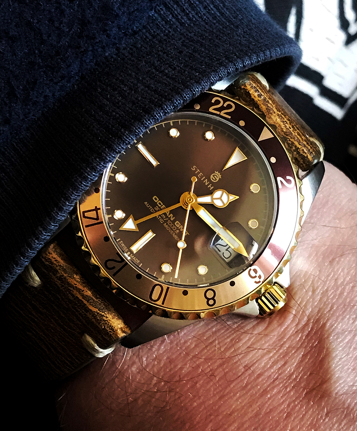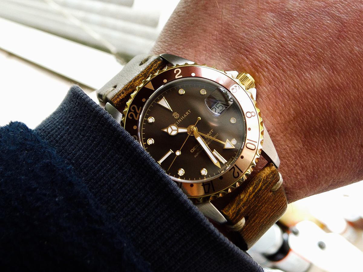 Mal eine etwas ungewöhnliche Kombi. Aber warum eigentlich nicht, die Zeiger / Indices sind ja auch leicht gelblich