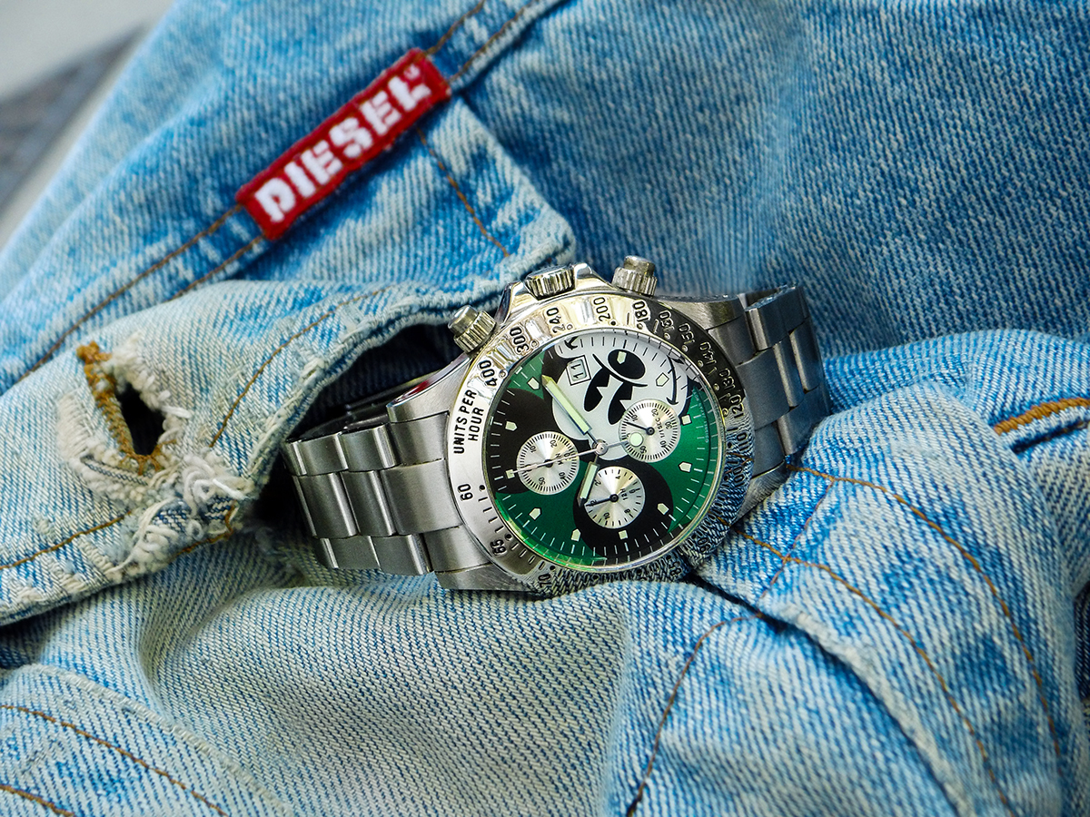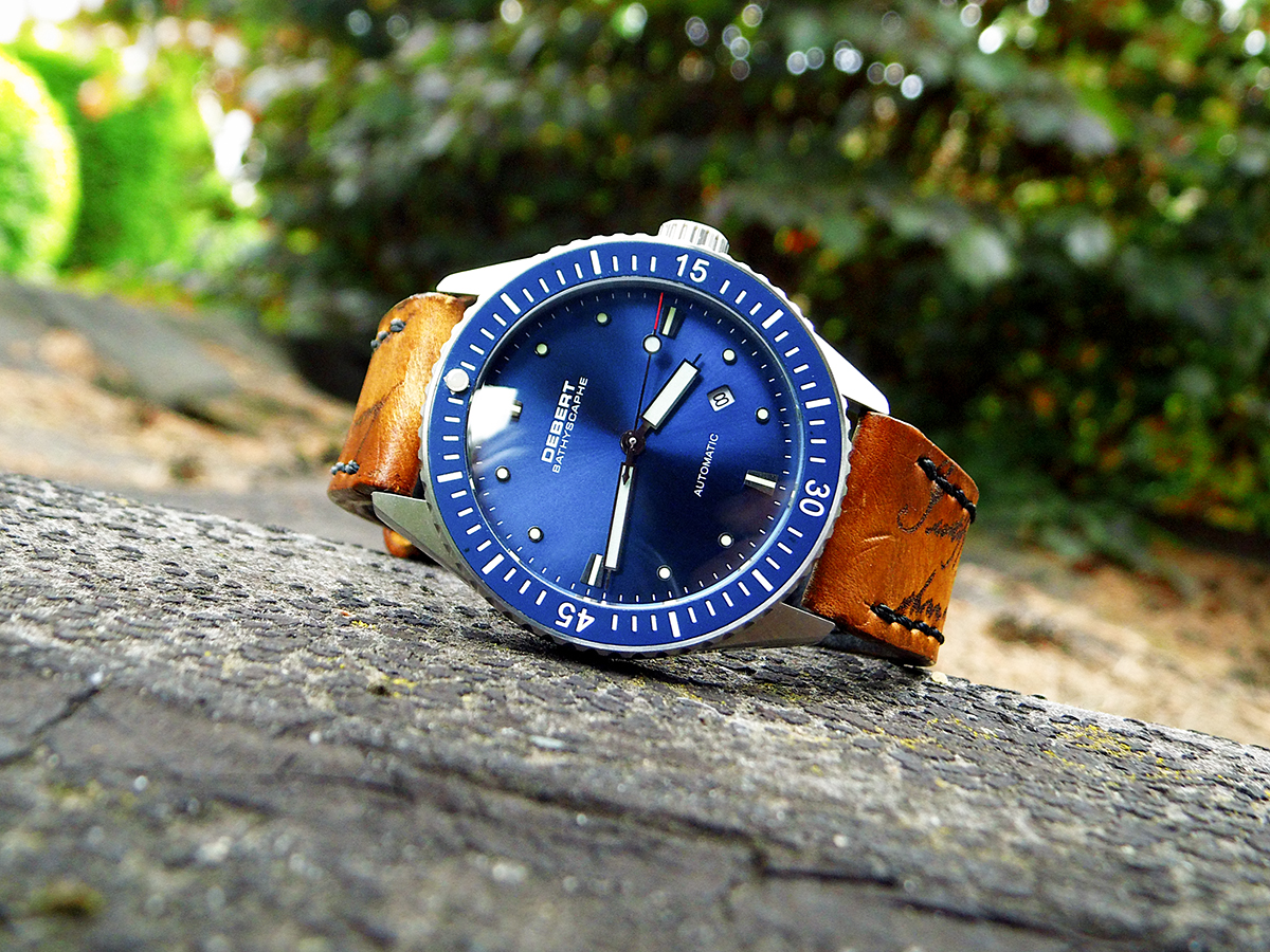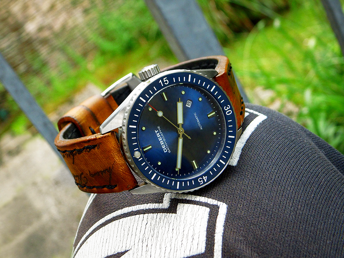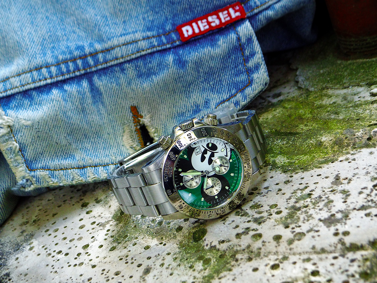 Hier die Zelos Hammerhead, 44mm, NH35, schon ein sehr wuchtiger und kantiger „Brummer“.