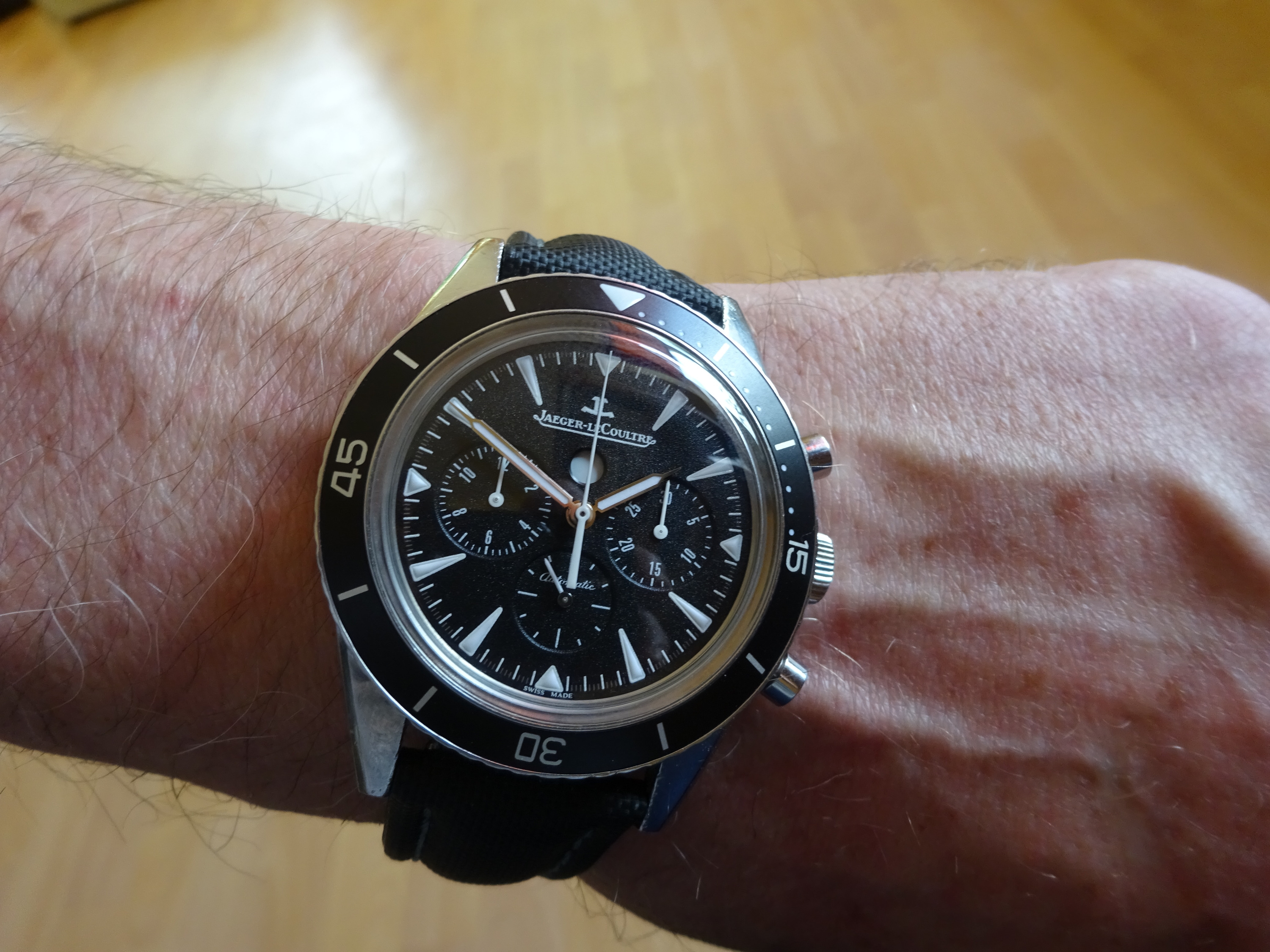 IWC GST* Alarm (*Gold / Stahl / Titan), und das Werk stammt von JLC. Es ist ein leicht verändertes JLC 918. Bei IWC heißt es 1.917