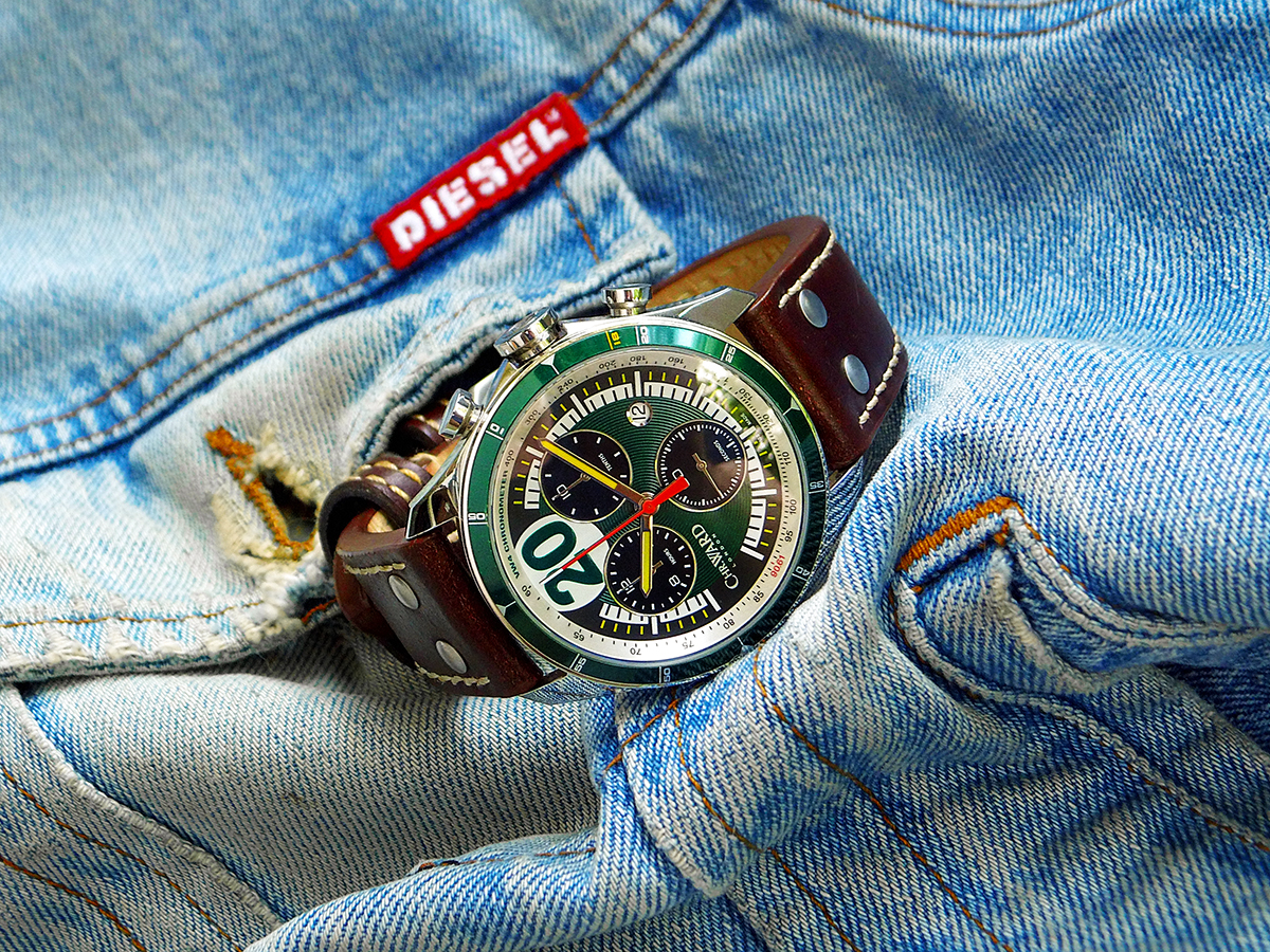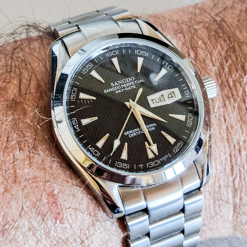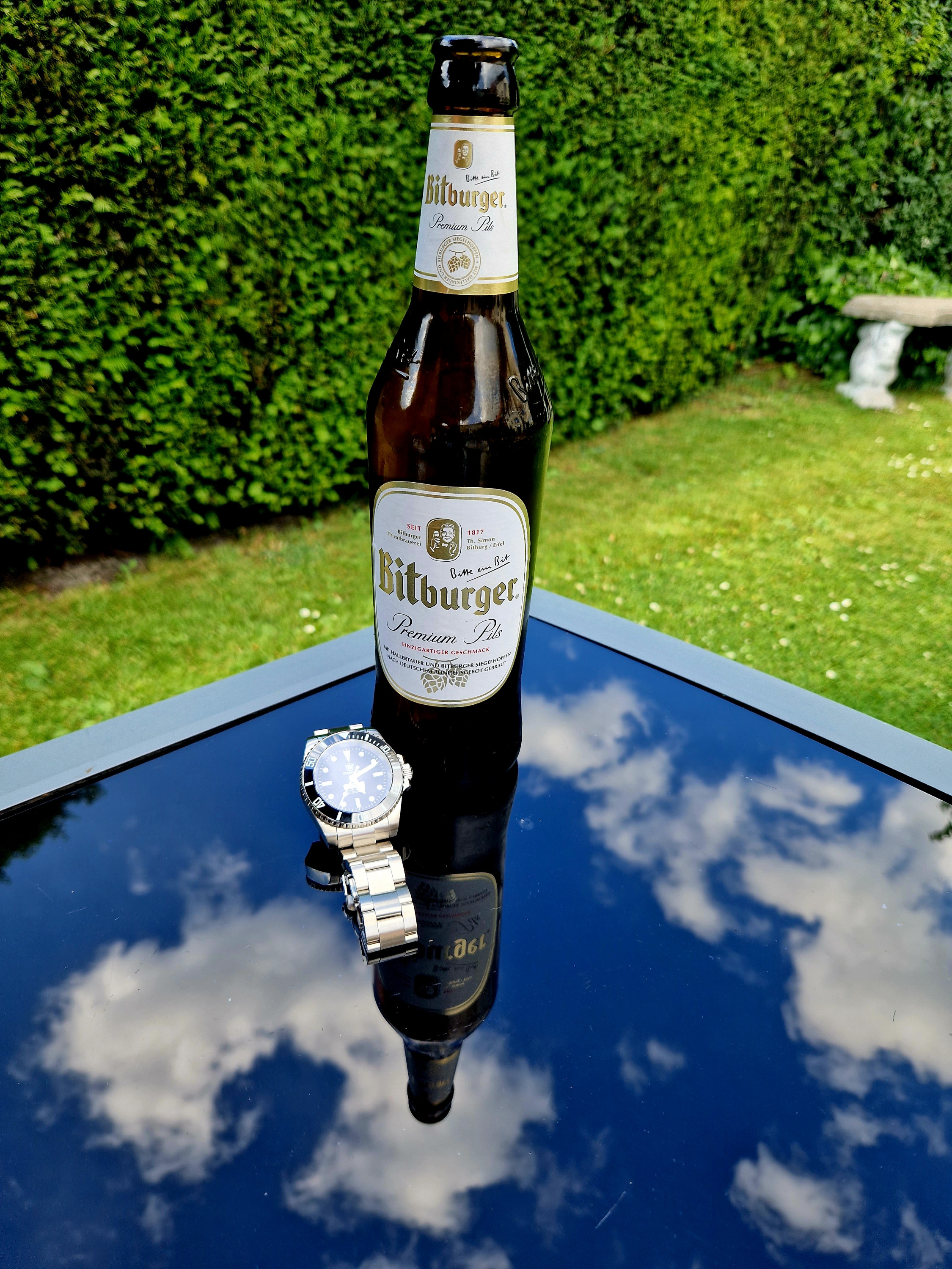 Das Zifferblatt ist einfach nur phantastisch. Je nach Lichteinfall wirkt es entweder einheitlich schwarz, oder in ganz dunklen Perlmutt-Tönen bis hin zu mittleren Grün- und Blautönen. An der Verarbeitung gibt es wie immer bei ARAGON nichts auszusetzen. Safirglas mit mehrfacher Entspiegelung, massives Armband mit ebenso massiver Schließe, rundum gebrushtes Finish, Lume auf Zeigern, Indizes, Lünette und Krone, komfortable Glide Lock Schnellverstellung. Die Lünettenrastung erinnert an das Zahlenschloß einer Safetür