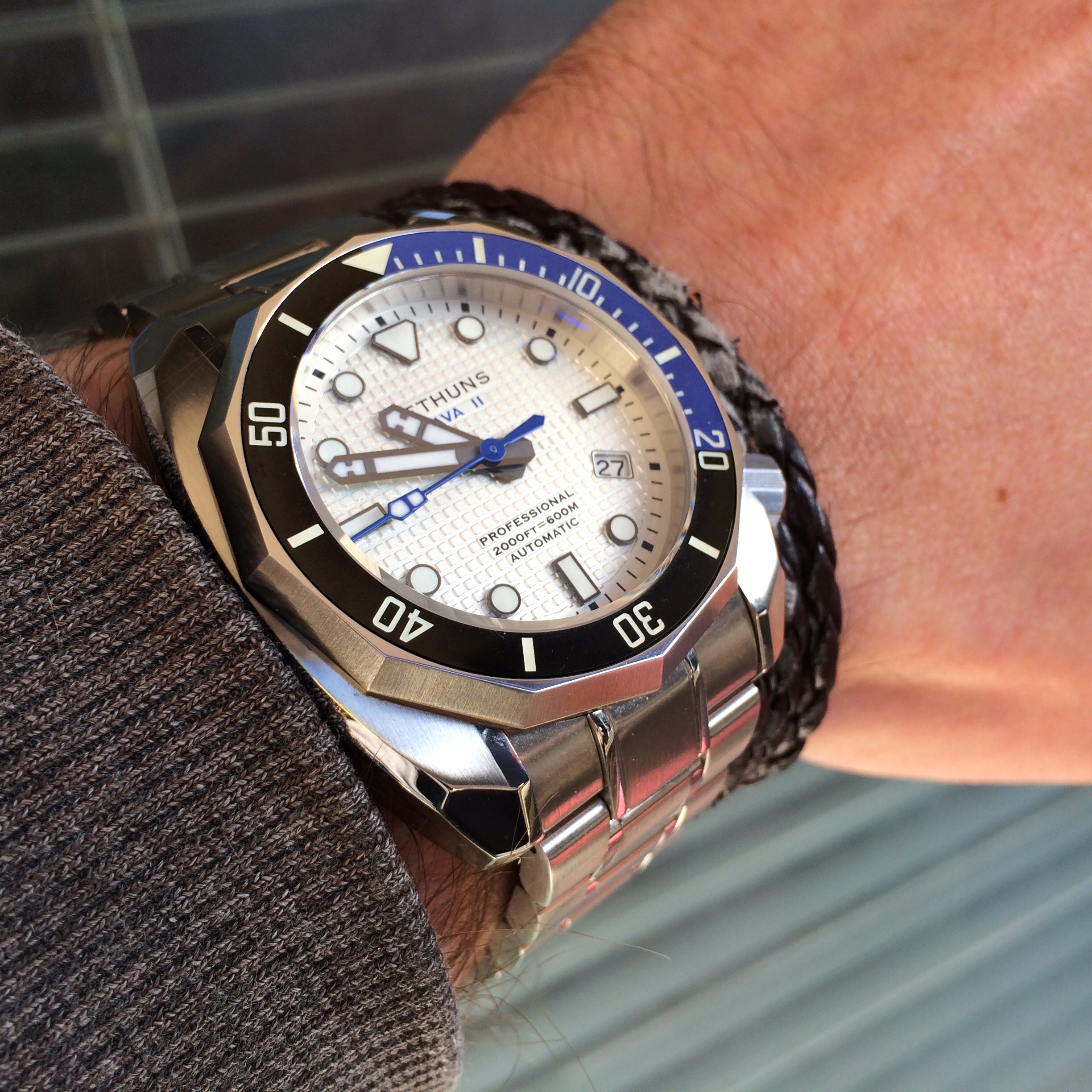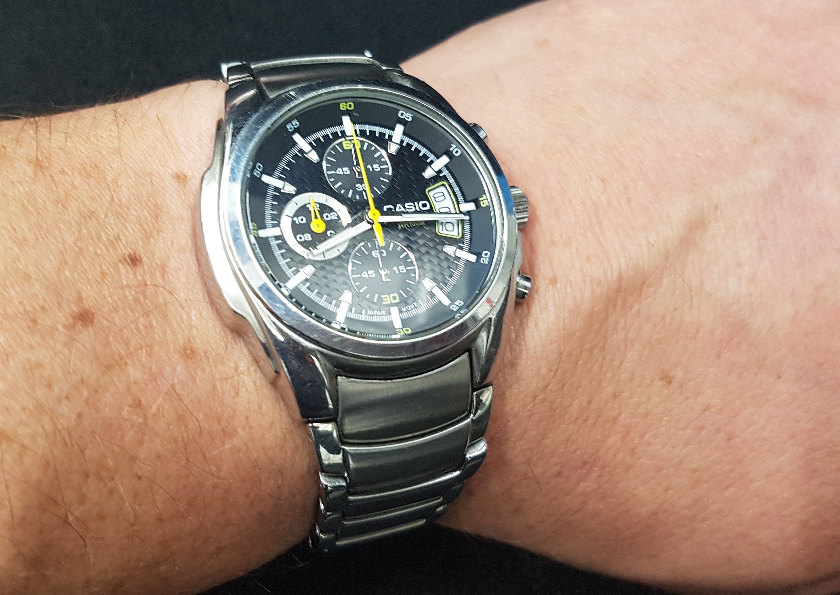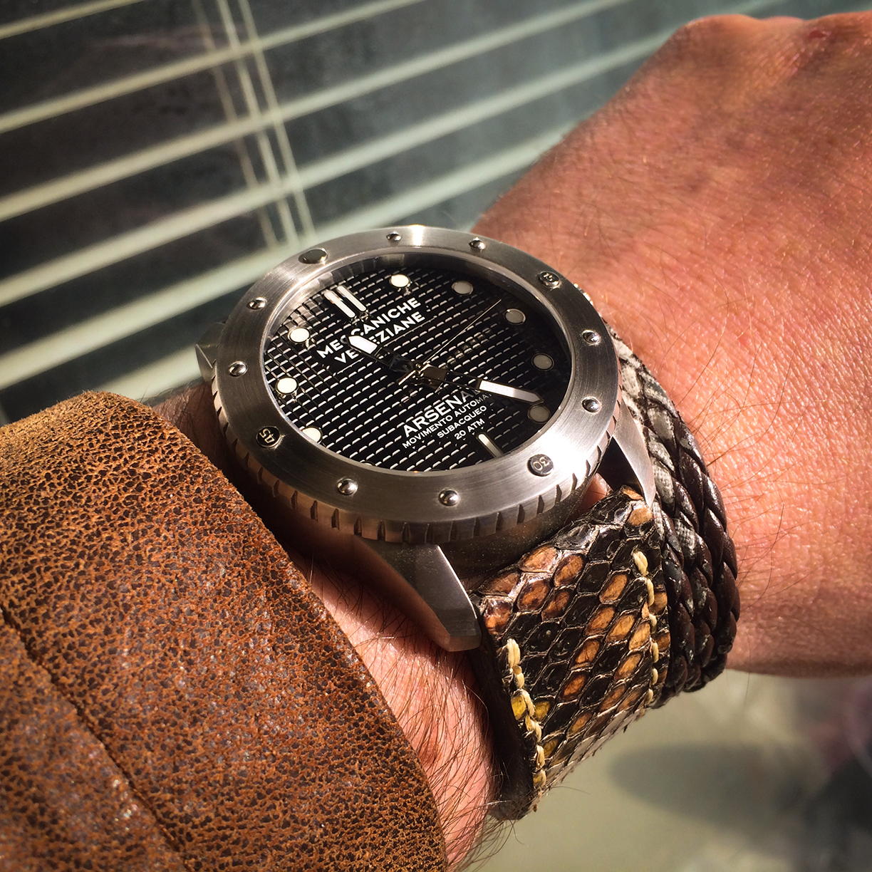 Hier erstmal ein paar schnelle Wristshots mit'm Ei-Phone. Ab nächste Woche hab ich Urlaub, da wollte ich eh nochmal ein paar Beauty-Shots von einigen Uhren machen.