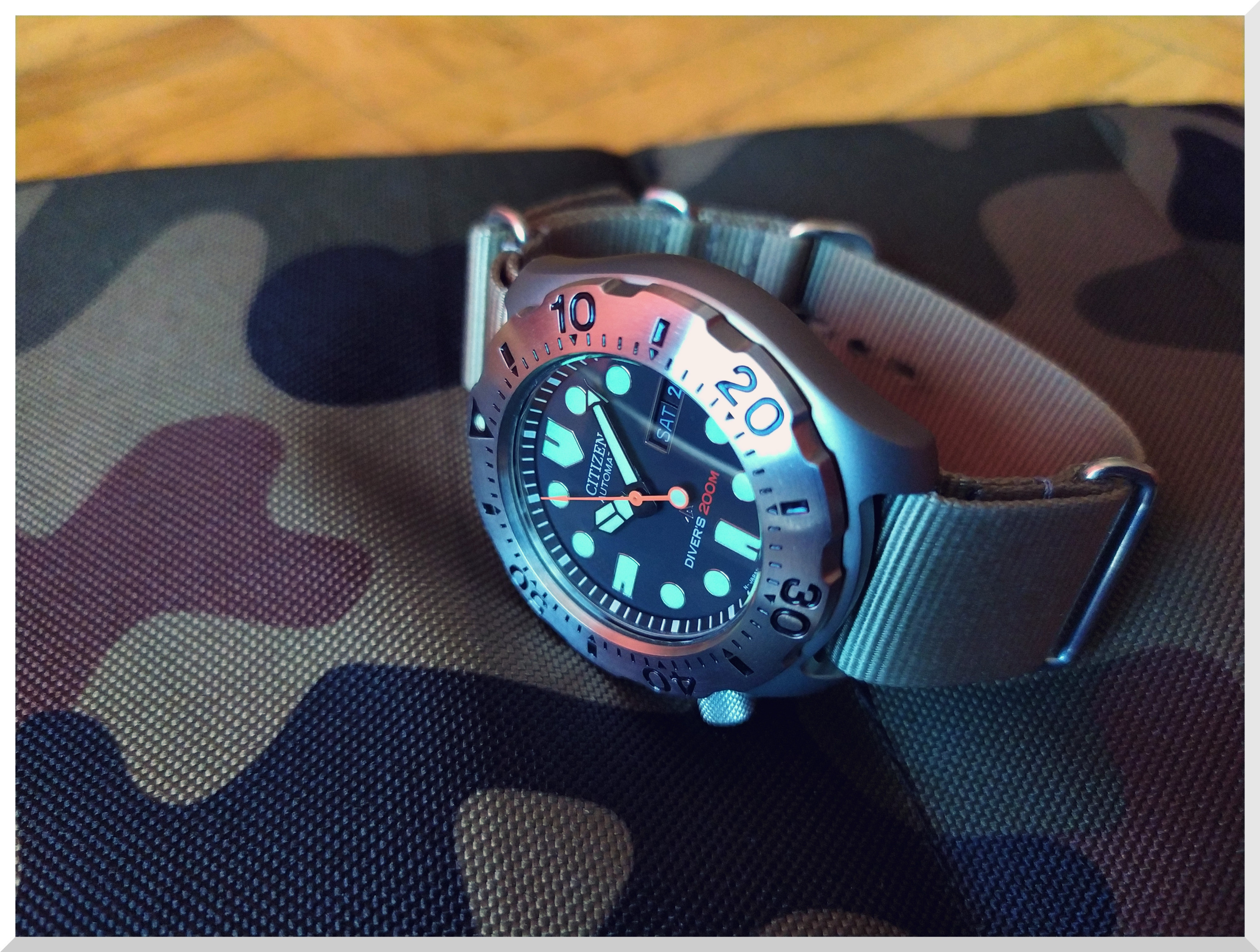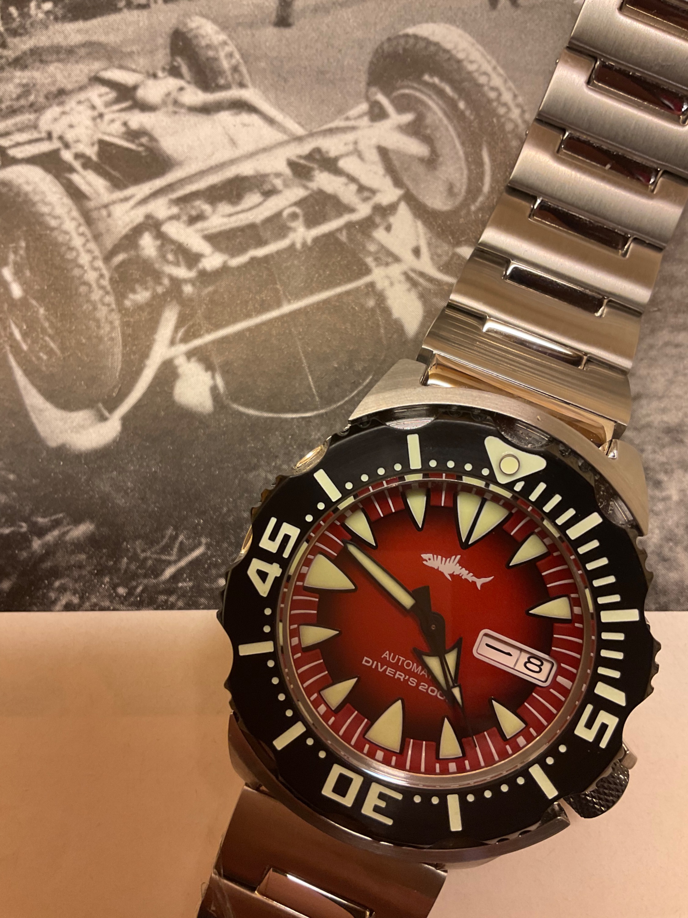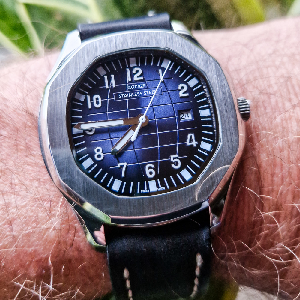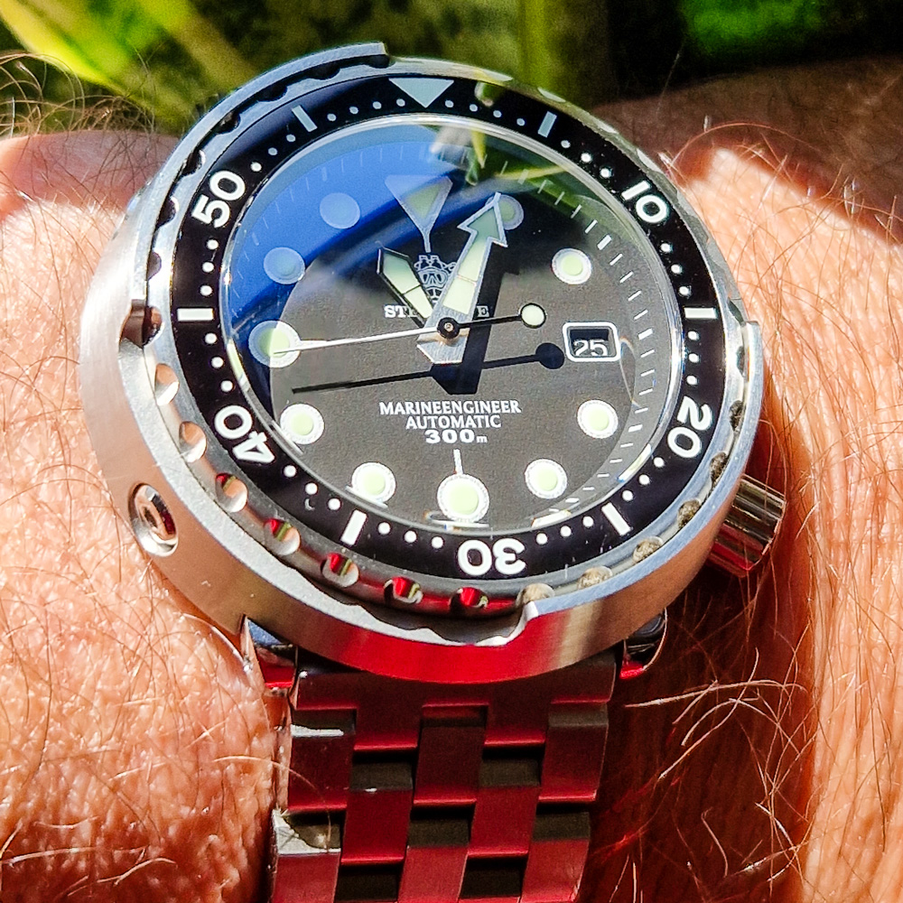 (Die Lünette stimmt mit 12 überein, ist nur durch Objektiv-Tablet IPad-verzerrt)