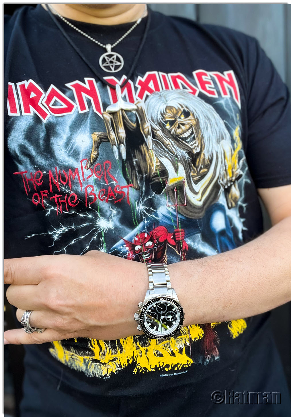 Zum 40. Jubiläum des IRON MAIDEN Albums "The number of the beast". Es ist das mittlerweile vierte "TNOTB" Shirt. Die ersten beiden haben nur ca. 6 - 7 Jahre gehalten, weil ich sie auch in meinem damaligen Job in der Papierfabrik getragen habe. Schwere Arbeit und ca. 38° C bei 90% Luftfeuchtigkeit fordern ihren Tribut an die Kleidung