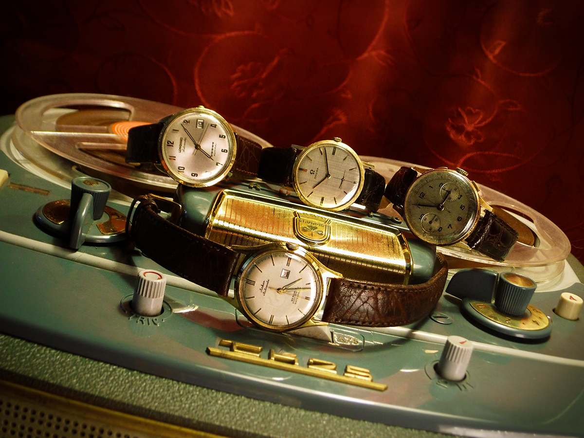 Longines, Omega, Opas Chrono, Anker und ein Grundig TK 25 Tonbandgerät (1958-1961)