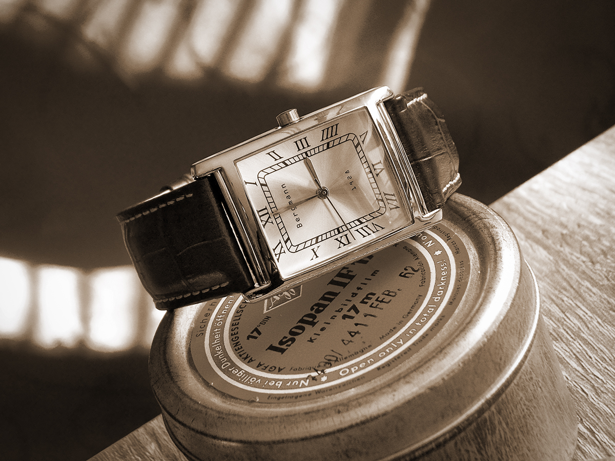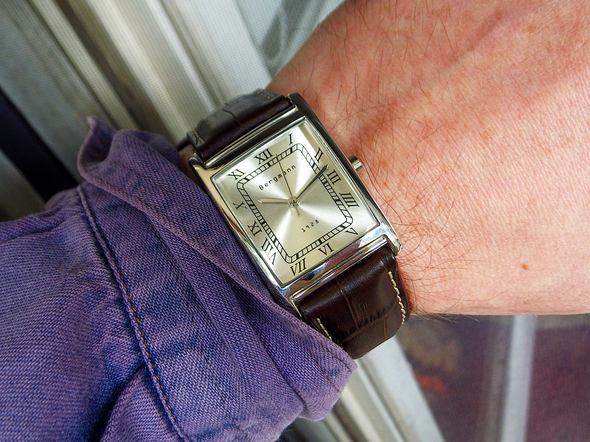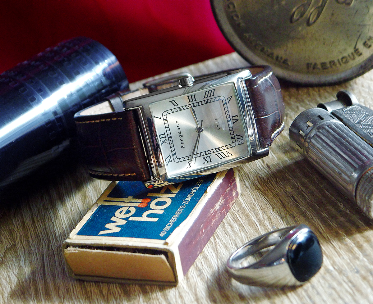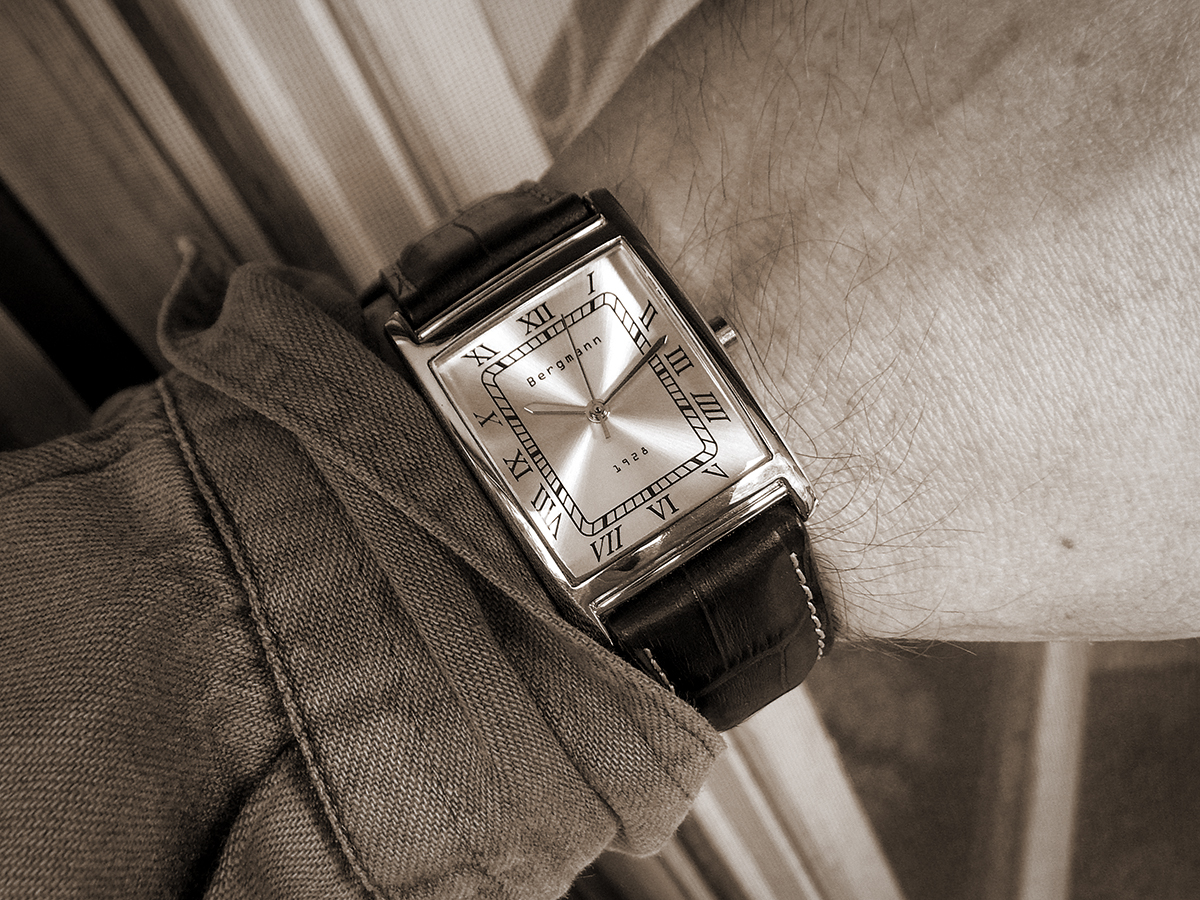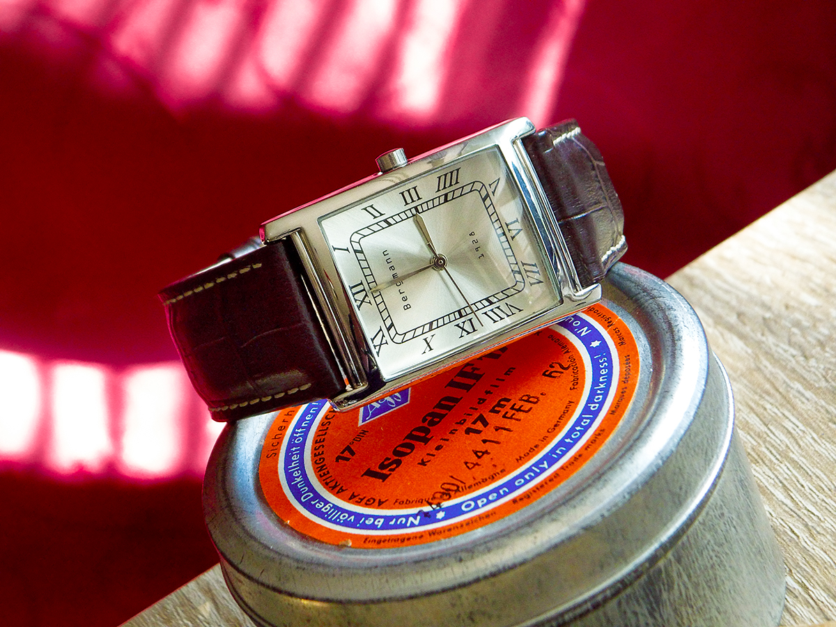 Endlich mal eine Uhr nicht aus den „runden Einheitsbrei“, sondern mit einer ganz eigenwilligen Trapezform! Und erst das Armband