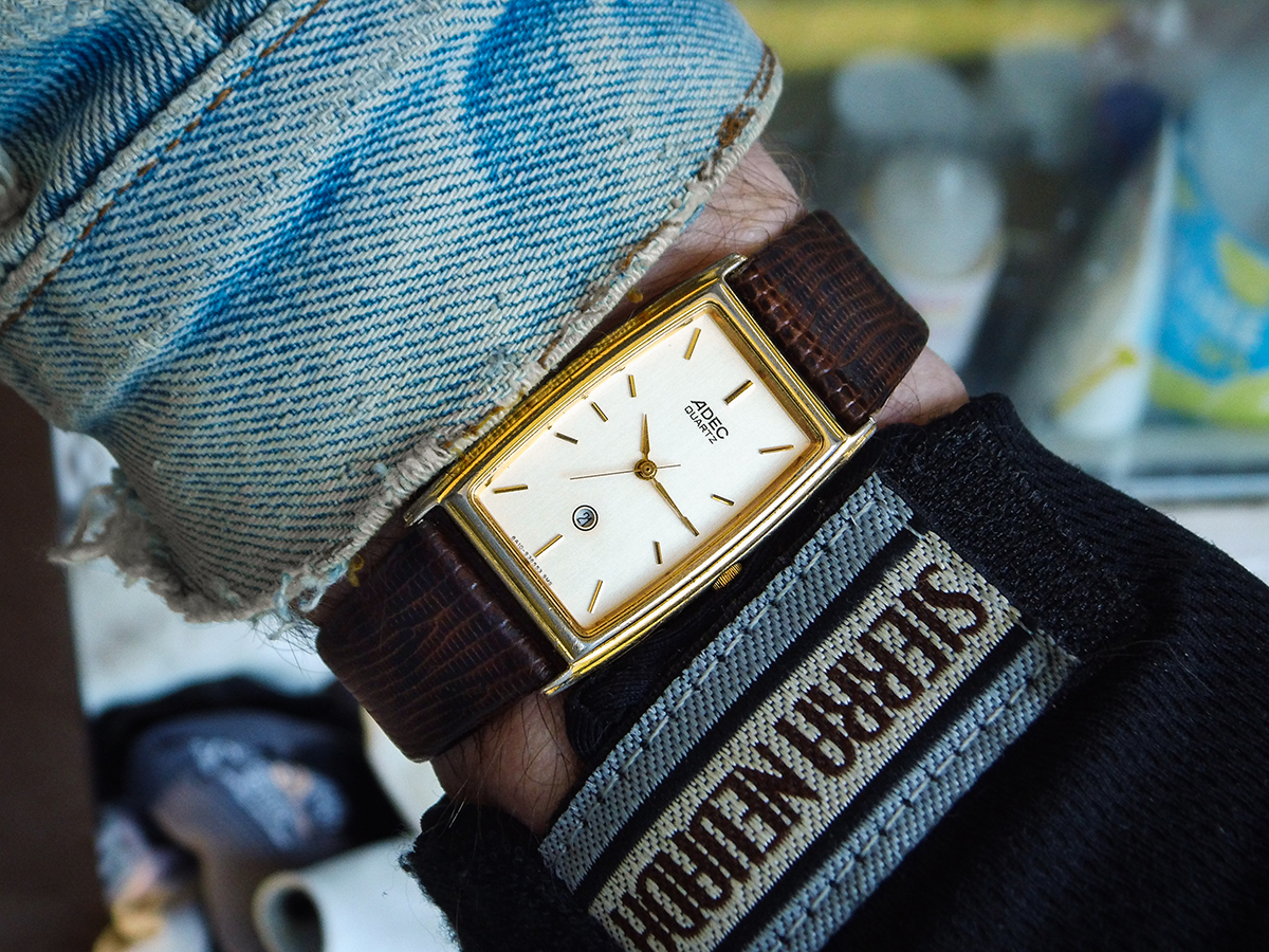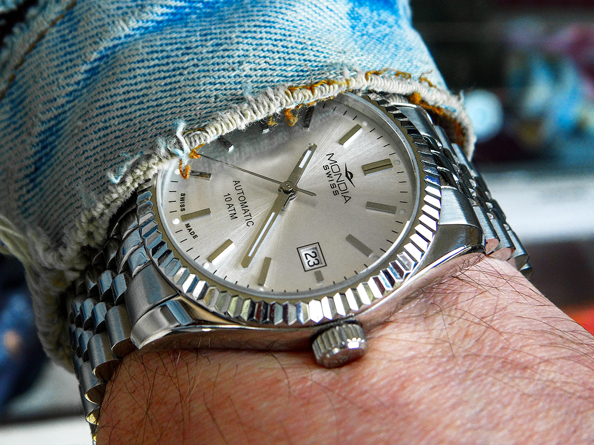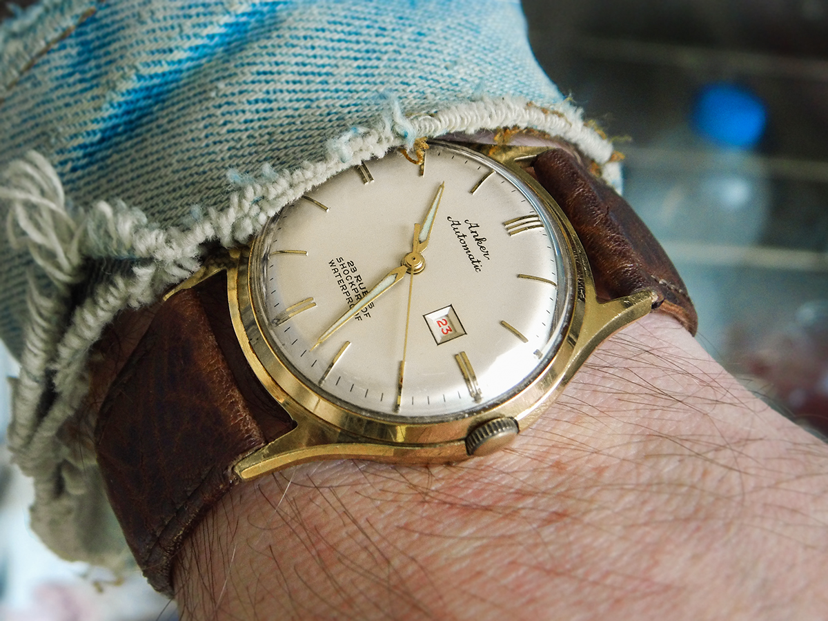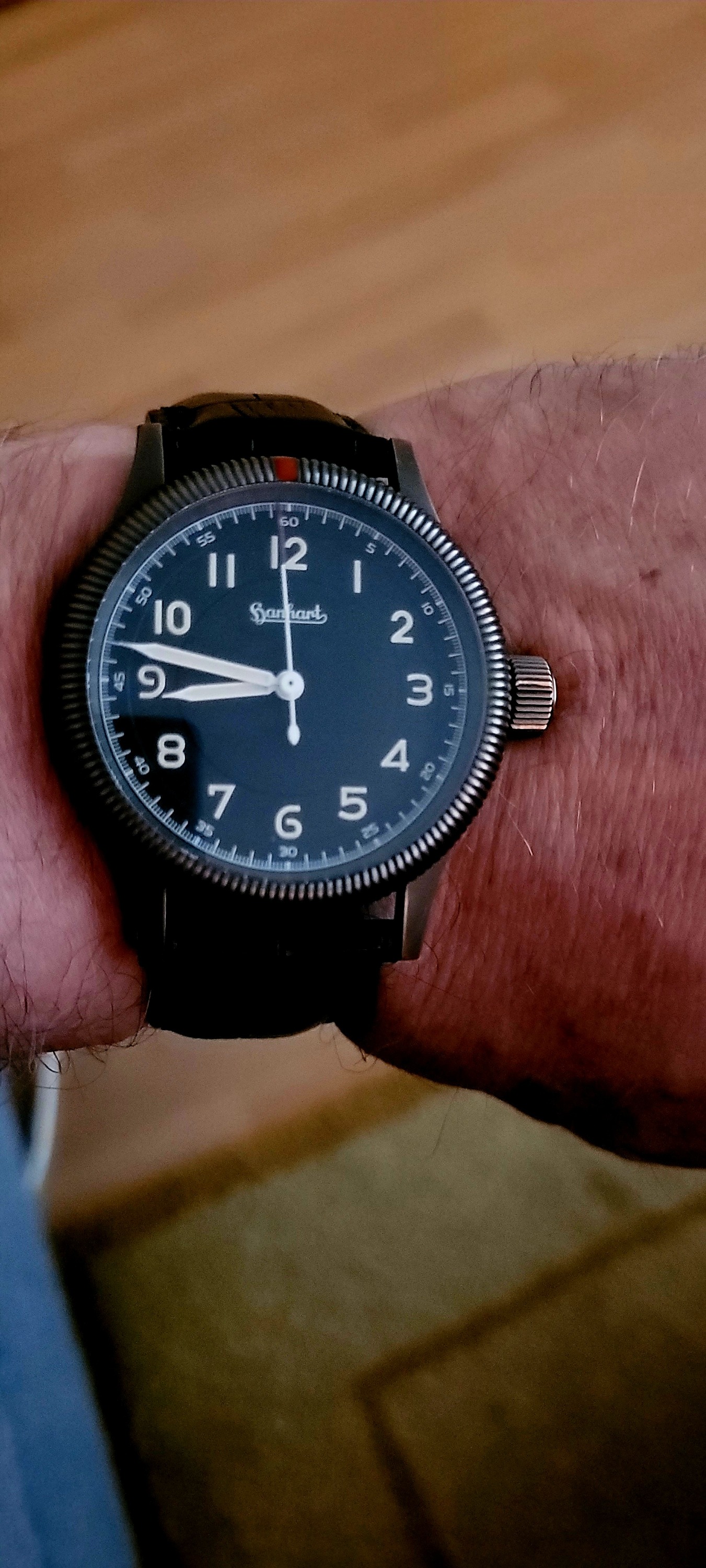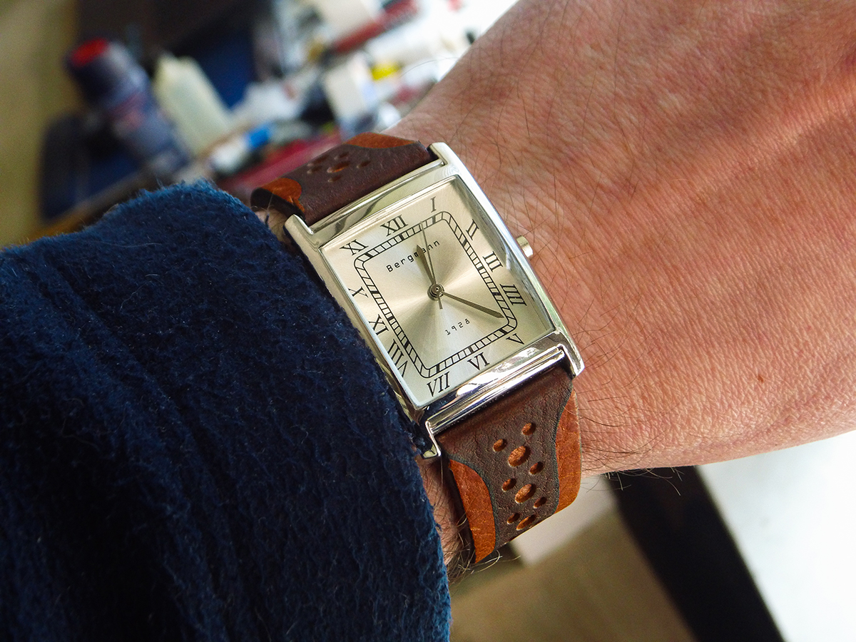 Meine Lederjacke paßt mir nicht mehr, bin zu fett geworden, aber für Uhrenfotos kann ich sie noch verwenden: