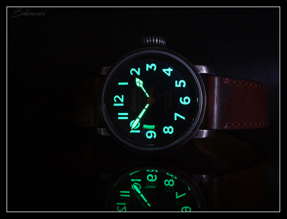 Bei meinen "Lumeshots" helfe ich mit einer Taschenlampe nach, damit man auch noch etwas von der Uhr sieht und nicht einfach nur Leuchtmasse auf schwarzem Hintergrund