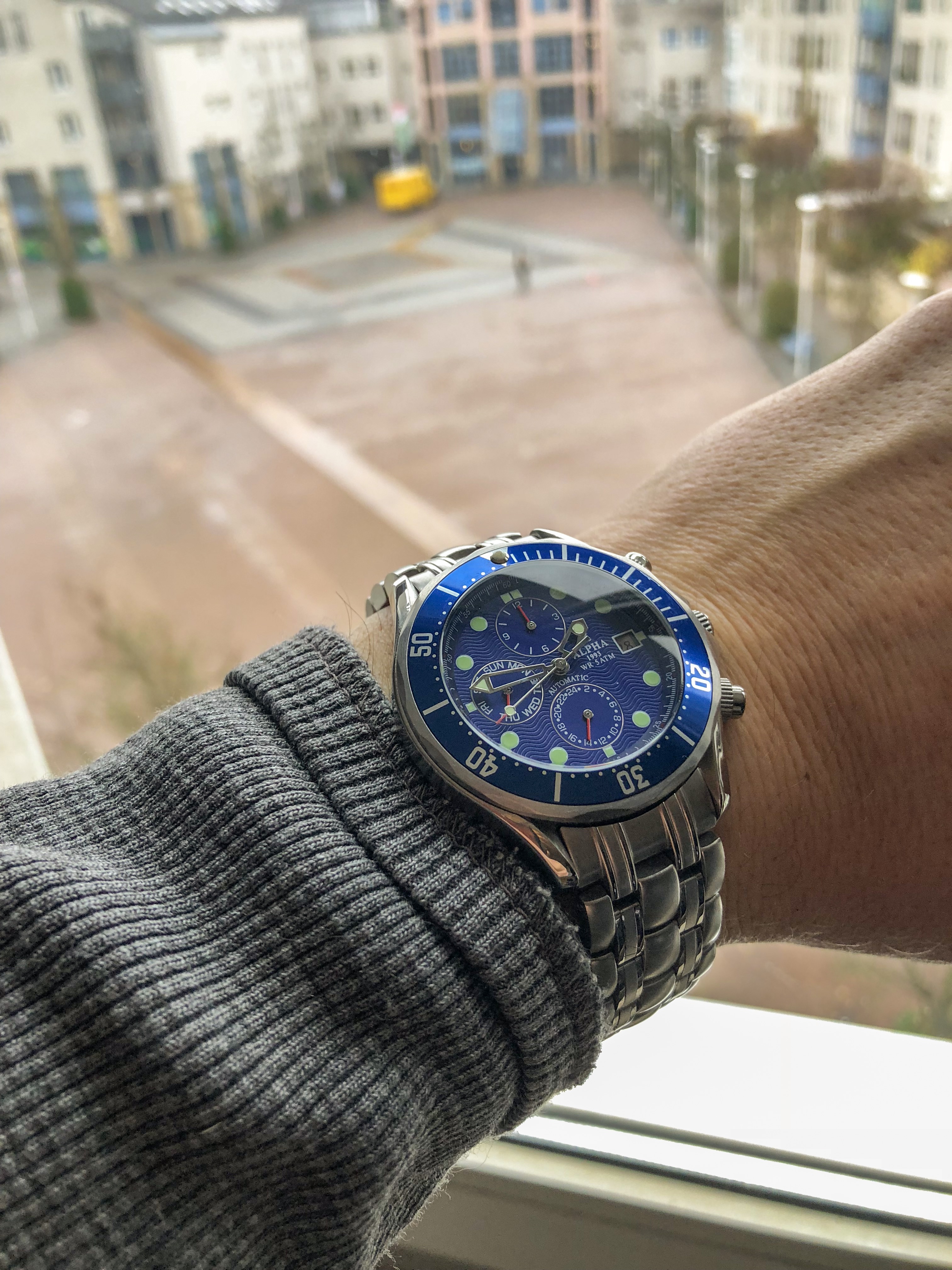 Heute musste ich trotz Schietwetter raus, ein paar Retouren bei DHL und Hermes abgeben. Die Alpha Seamaster schien mir bei der Nässe angemessen