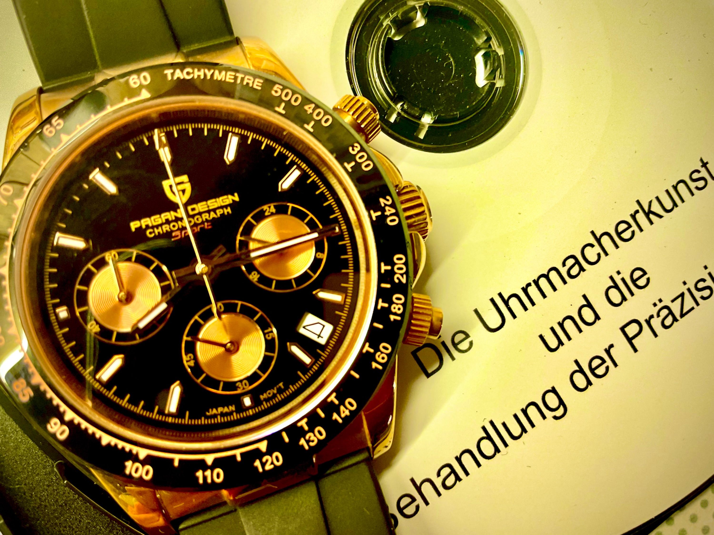 Da muß ich doch direkt Glitzer, Glitzer machen, und einen Schuss Gelb reingeben, mit meiner Pagani Design Chronograph PD-1644 mit VK63 (Seiko)