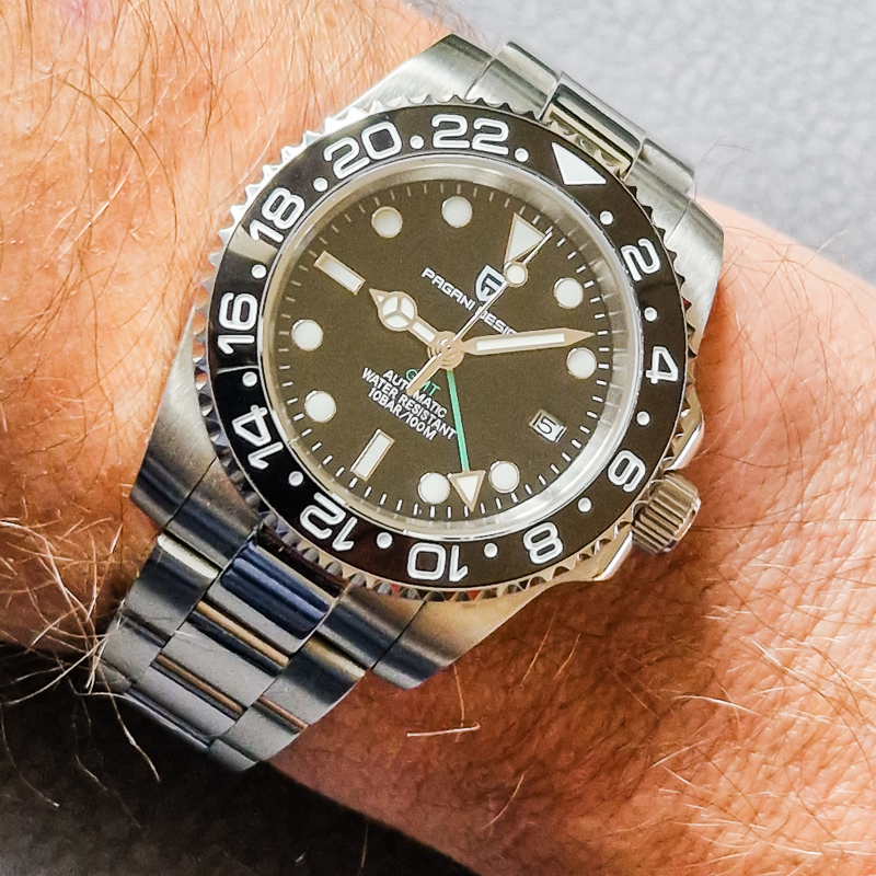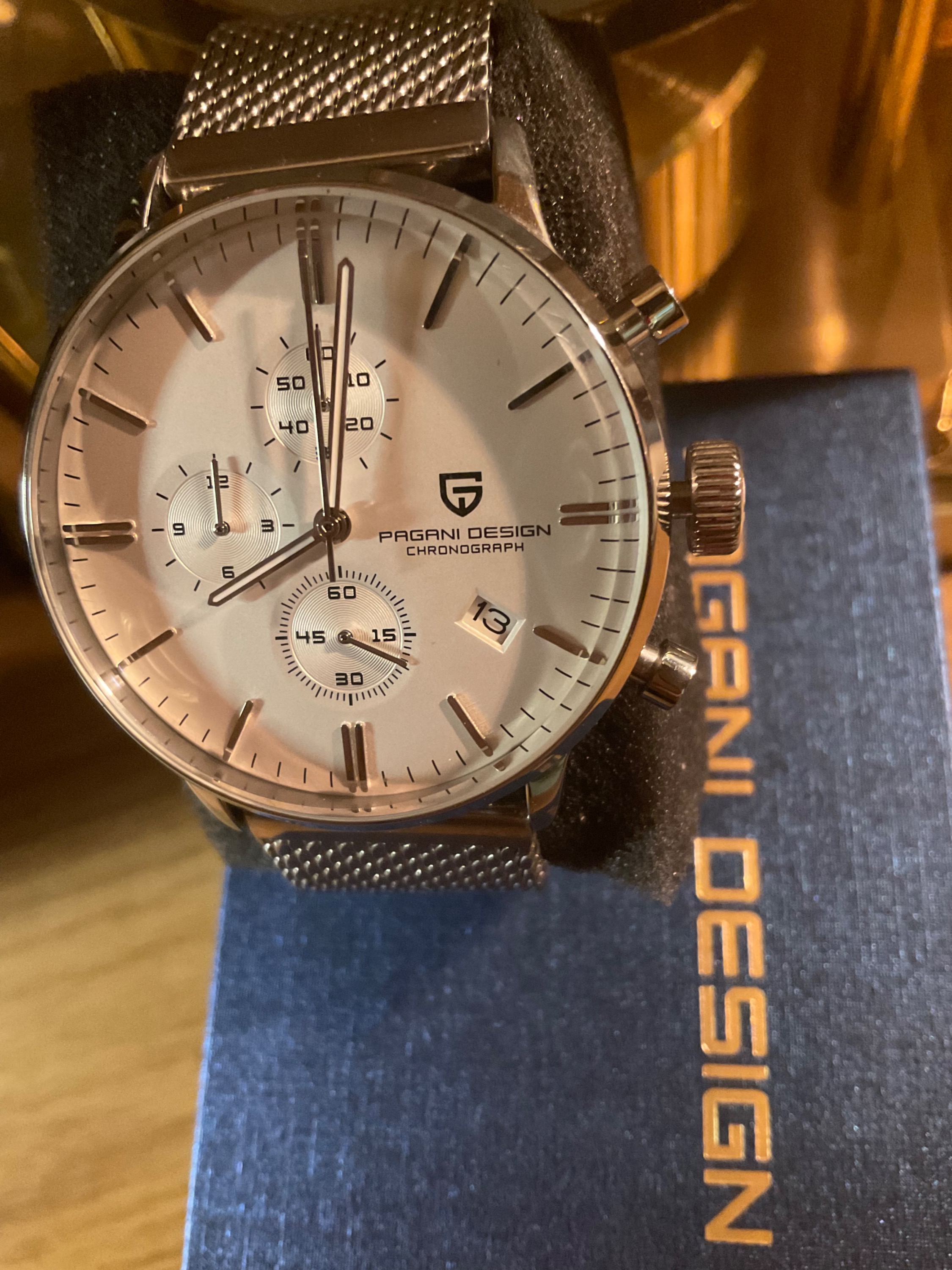 Habe längere Zeit nachgedacht, was biete ich denn heute an, um den Uhrenfreaks einigermaßen Paroli zu bieten?Da fiel mein Blick auf ein Schächtelchen mit der Aufschrift „Pagani Design“. Neugierig öffnete ich es und heraus kam: Pagani Design PD2720K Chronograph mit Seiko VK64 mit Mecaquarz