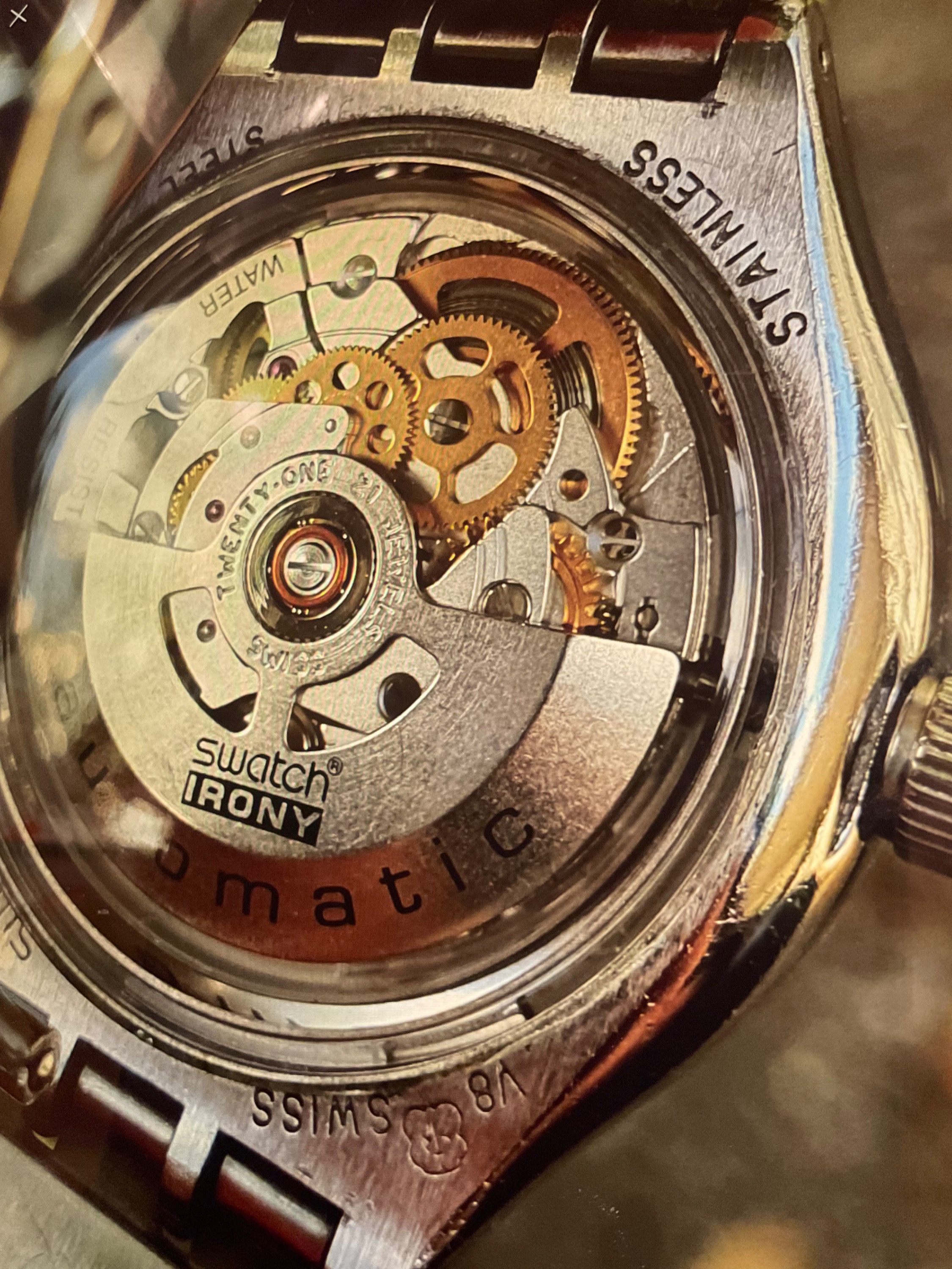 Ich bin ja auch kein Fan der Swatch-Uhren, aber dieses Modell YAS 100G war m.E. ein grosser Wurf. Das Werk, das es ja nur in dieser Uhr gibt, war optimiert für die Skelettierung, mit besonders grosser Unruh und auch die Skelettierung ist gut gelungen: alles ist formschön und die Uhrenteile sind gut zu erkennen. Durch das skelettierte Federhaus hat man auch eine direkte Gangreserveanzeige.