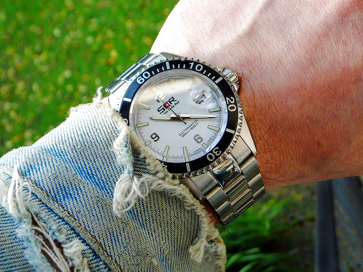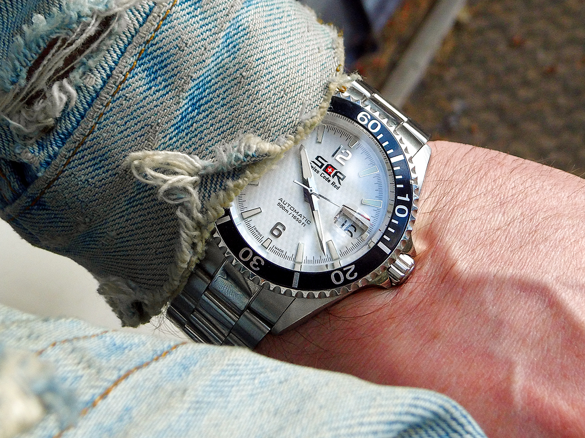 Das Werk ist ein Hangzhou 2189. Der einzige Nachteil ist, dass dieses Werk nicht von Hand aufgezogen werden kann, sondern nur über den automatischen Aufzug. Man muss sie daher vor dem ersten Anlegen erst mal ein paar Minuten herumschütteln, aber das war ja auch bei den billigeren Seiko- und Citizen-Automatic-Kalibern so.