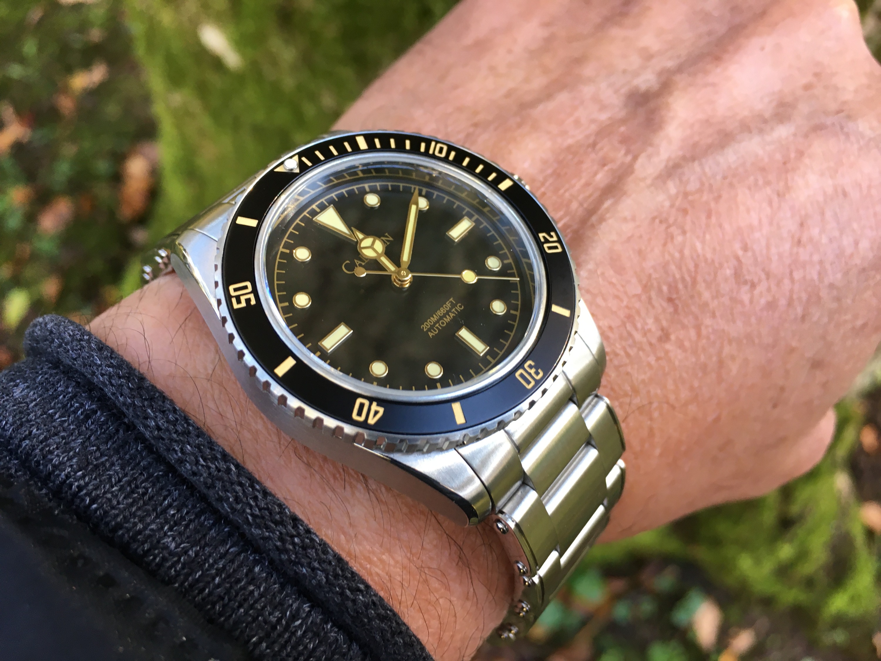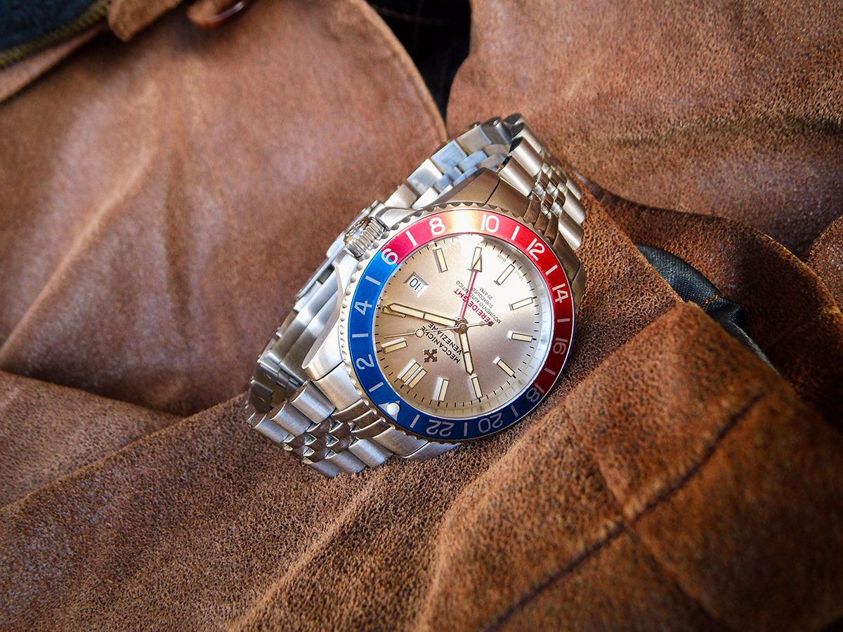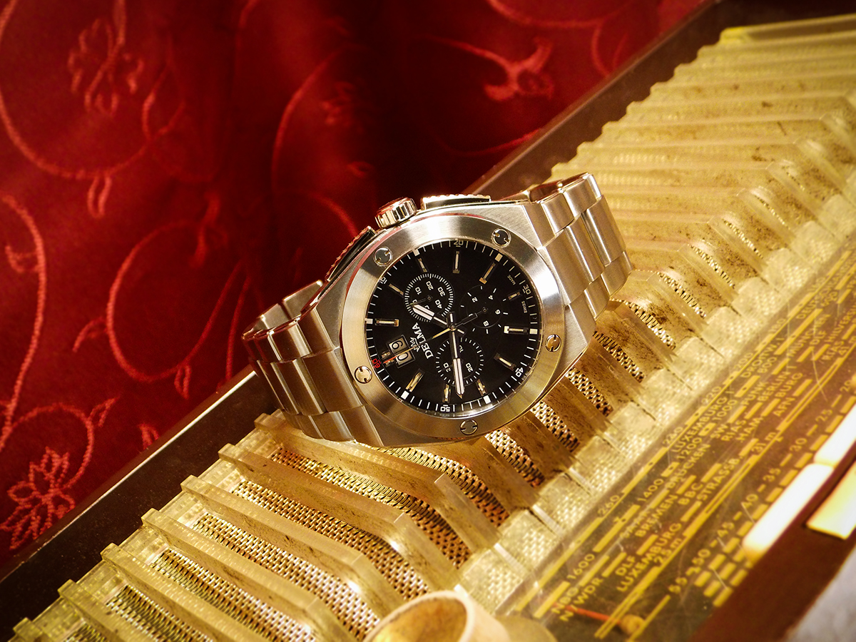 Klopper kann ich auch! Hier ein Kuriosum: Mischung aus 43mm Case ähnlich RLX Deep Sea, Batman-Lünetten Inlay (gab es nie bei der Deep Sea) und GMT-Werk
