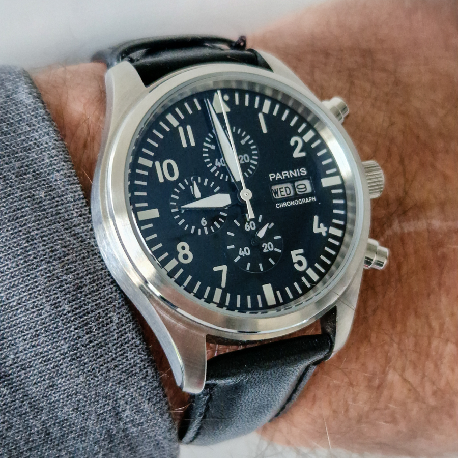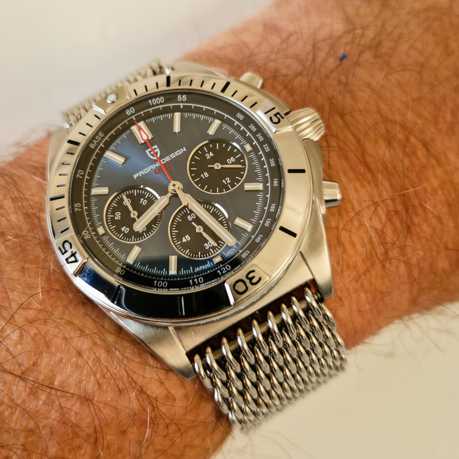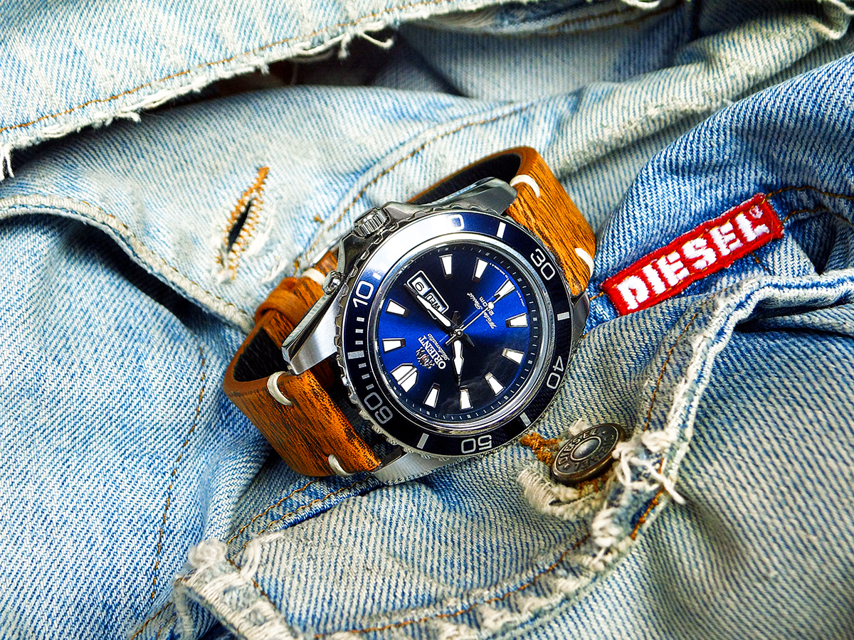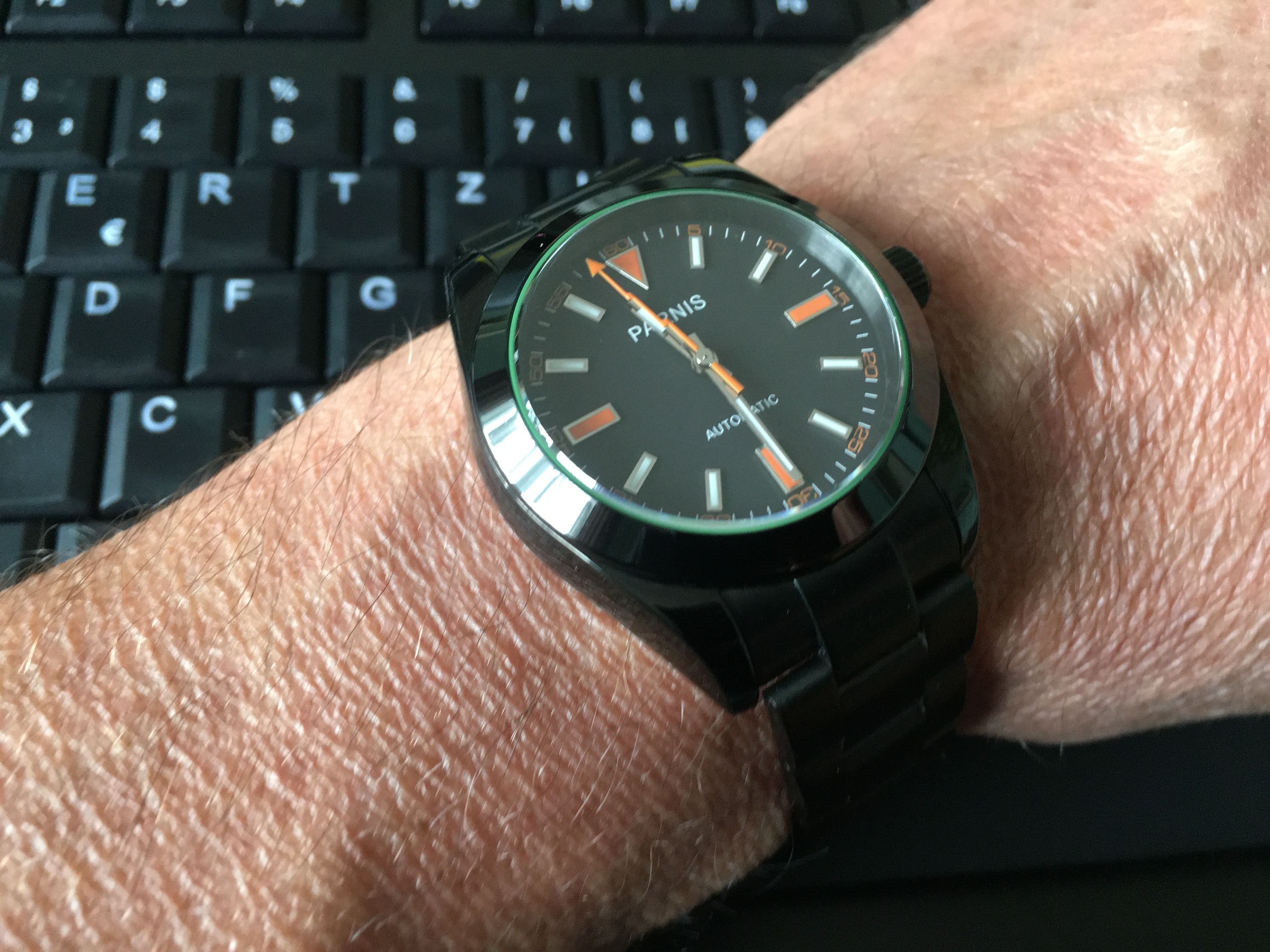 Klopper kann ich auch! Hier ein Kuriosum: Mischung aus 43mm Case ähnlich RLX Deep Sea, Batman-Lünetten Inlay (gab es nie bei der Deep Sea) und GMT-Werk