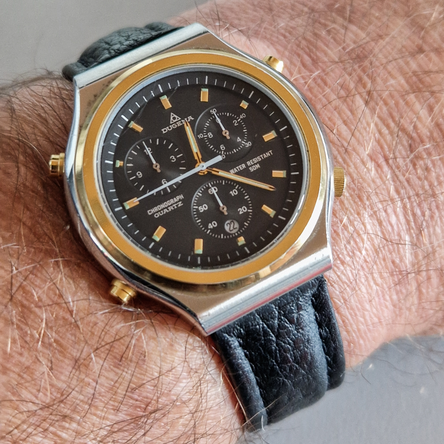 Das ist ja nun nicht schlecht als Beifang. Das neue Band passt auch gut dazu. Ich würde davon ausgehen, dass diese Uhren auf den Fotos wohl alle das gleiche Werk enthalten. Sie sind - abgesehen von der Marke - gleich beschriftet (auch was die Positionen der Funktionen betrifft). Digitalanzeige nur als 12h-Anzeige, keine 24h-Anzeige möglich. Allzu viele Ana-Digi-Werke dürfte es damals nicht gegeben haben. Sind die beiden Werke gekoppelt oder unabhängig? Gibt es einen Alarm?