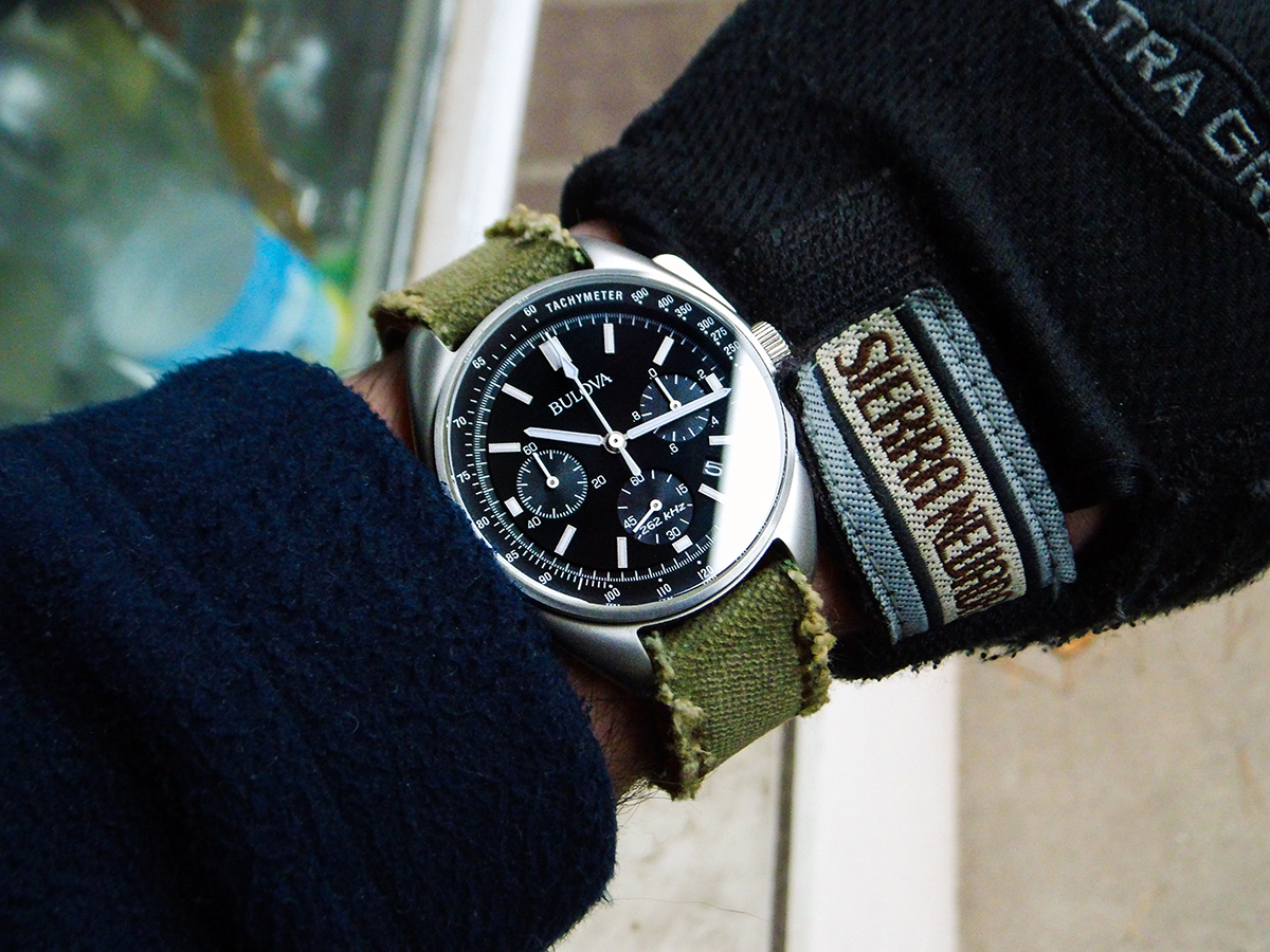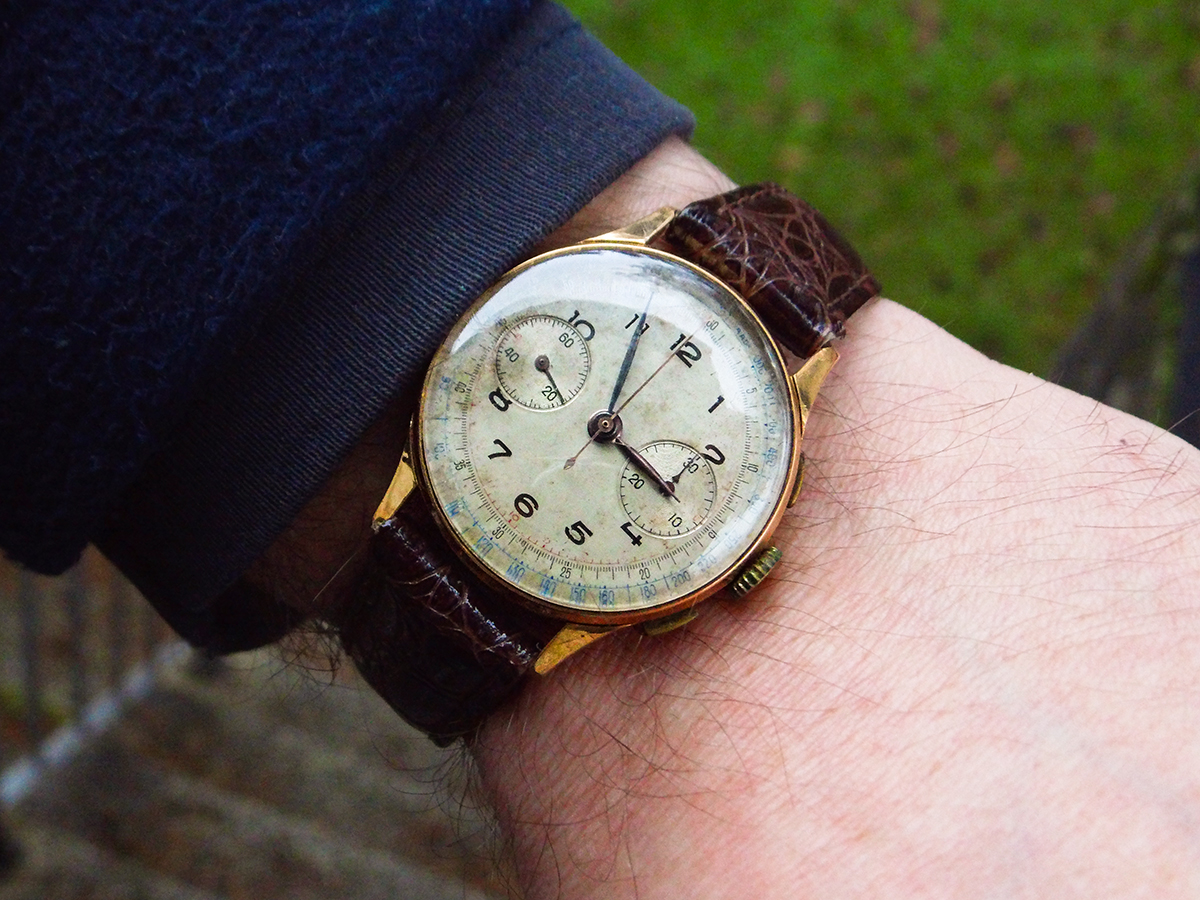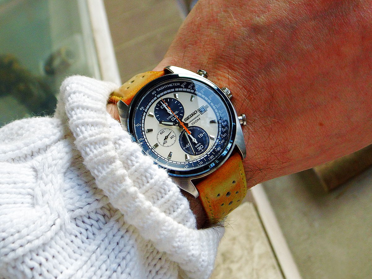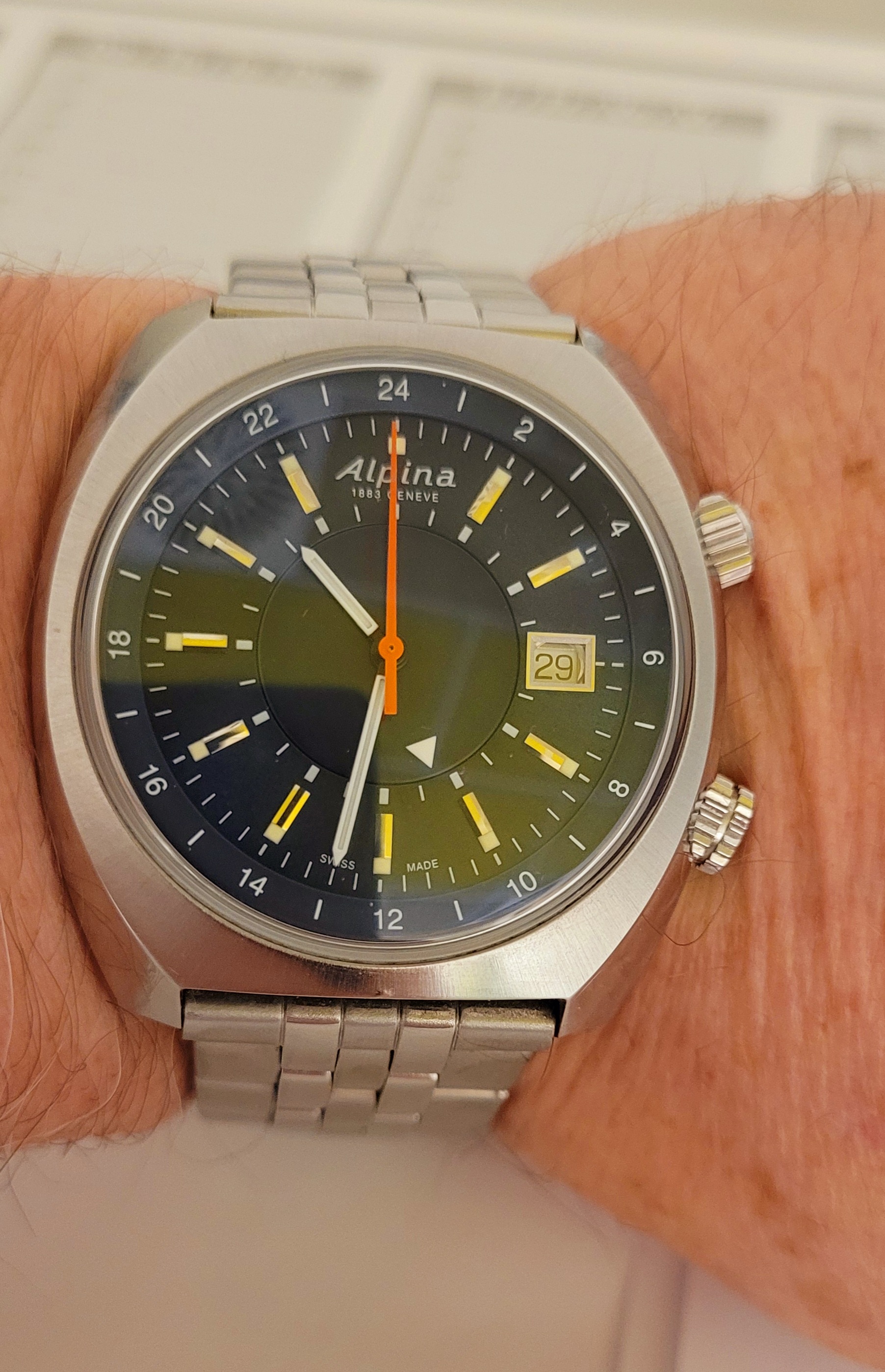 Das Zifferblatt hat einen schönen "Tapetenschliff" und changiert von blau bis schwarz, vielleicht schaffe ich es bei mehr Tageslicht noch bessere Fotos zu schießen.