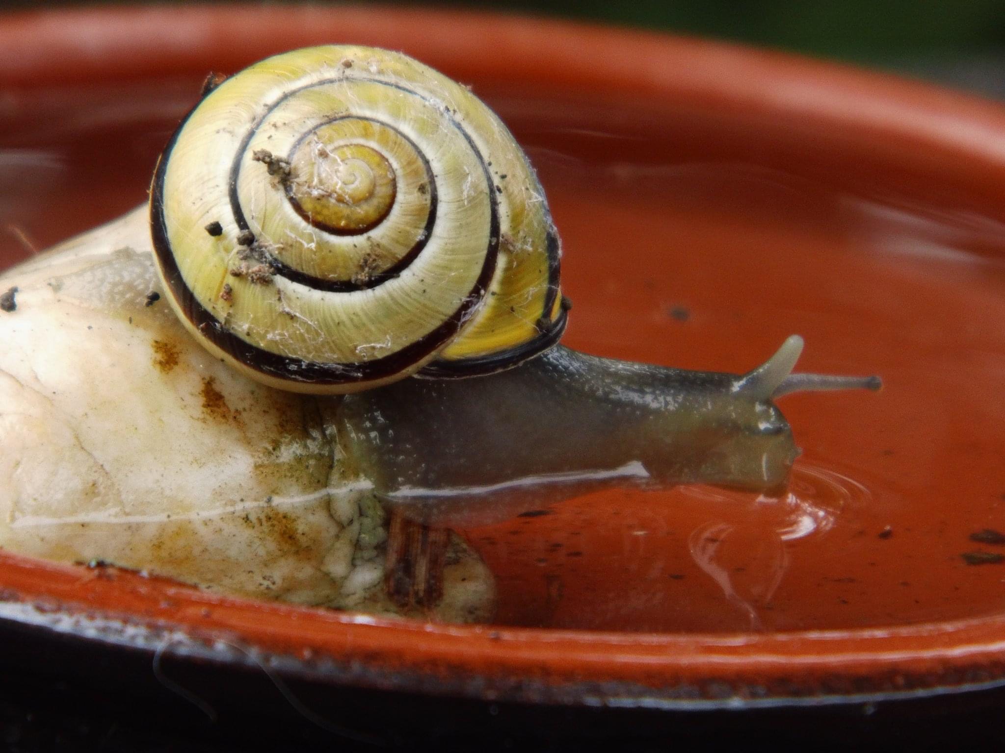 Mit den Stein in der Wasserschale, dass beobachte ich häufig, tun sich auch viele Tiere leichter, sie landen darauf, machen dann ihr Gefieder nass, und für etliche Tiere ist der Napf auch zu tief. Mein Hund hat einen Lieblingsnapf, einen großen Topfuntersetzer, bei jemanden seinGrundstück, da schmeckt das Wasser besonders gut! Zu den Schnecken, mir tut es jedesmal leid, wenn es unter den Schuhen knirscht, und ich habe wieder eine Schnecke aus Versehen zertreten!